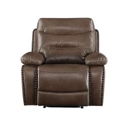 - OverviewThe Aashi Living Room Collection by Acme Furniture is upholstered in a soft leather-gel match in a timeless, rich brown color. The horizontal tufting on the backrest cushions adds some style to this collection, while the pillow top armrests ensure total comfort when you nestle into the pocket coil seats. Bring home the relaxing Aashi collection, and get ready to lean back and say “Ah…”