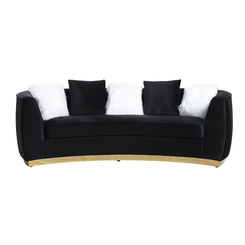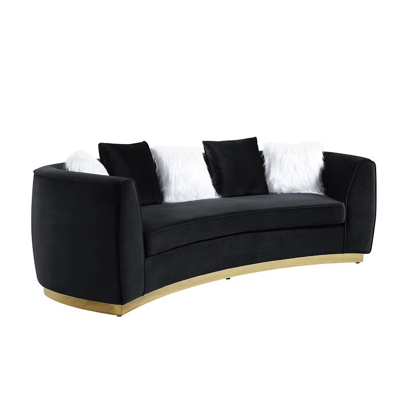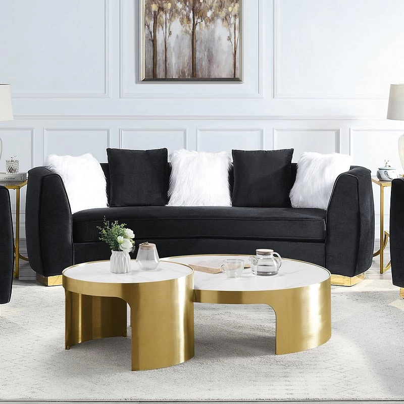 - OverviewLet glamorous vintage style take the spotlight with the Achelle Living Room Collection by Acme Furniture. Introduce a sumptuous seating experience with a gracefully curved form and soft, black velvet upholstery for an irresistible focal point to any living room or other seating areas around the home. The gold detail on the base shows the sophistication and workmanship of this exquisite piece of furniture.