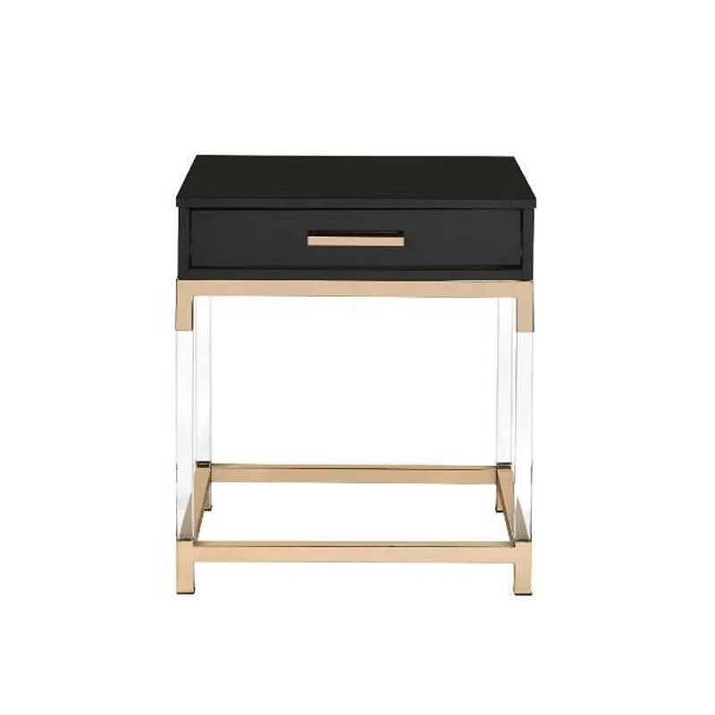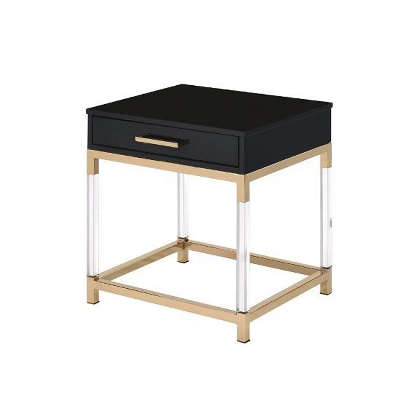 - OverviewMatch your seating ensemble with this Adiel Occasional Table Collection by Acme Furniture to lend a modern flair to your living room. The beautiful metal frame in gold finish adds a touch of glam to this contemporary piece, with clear acrylic legs that elegantly frame the design.