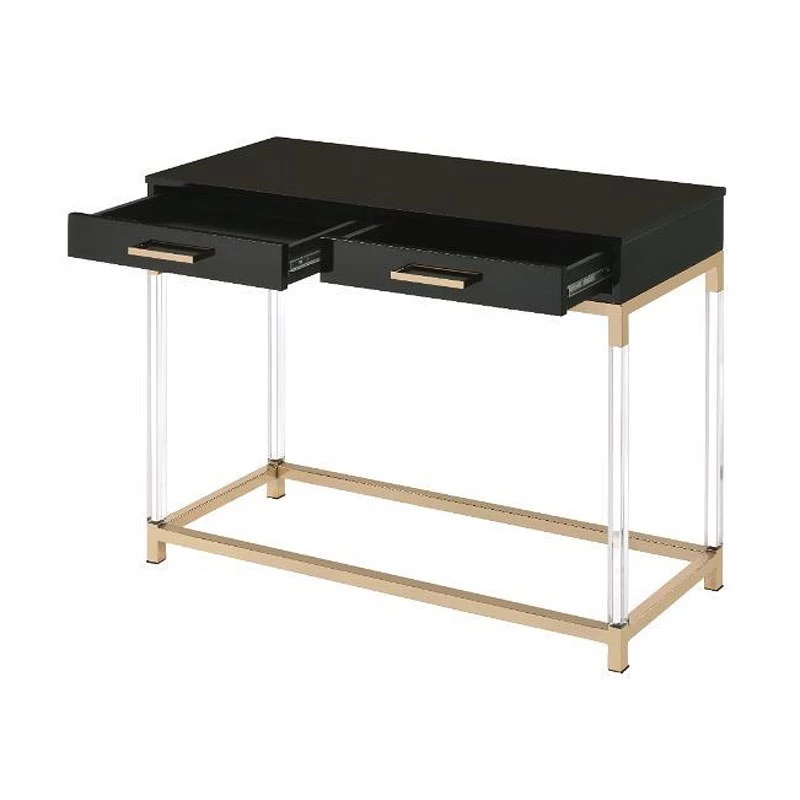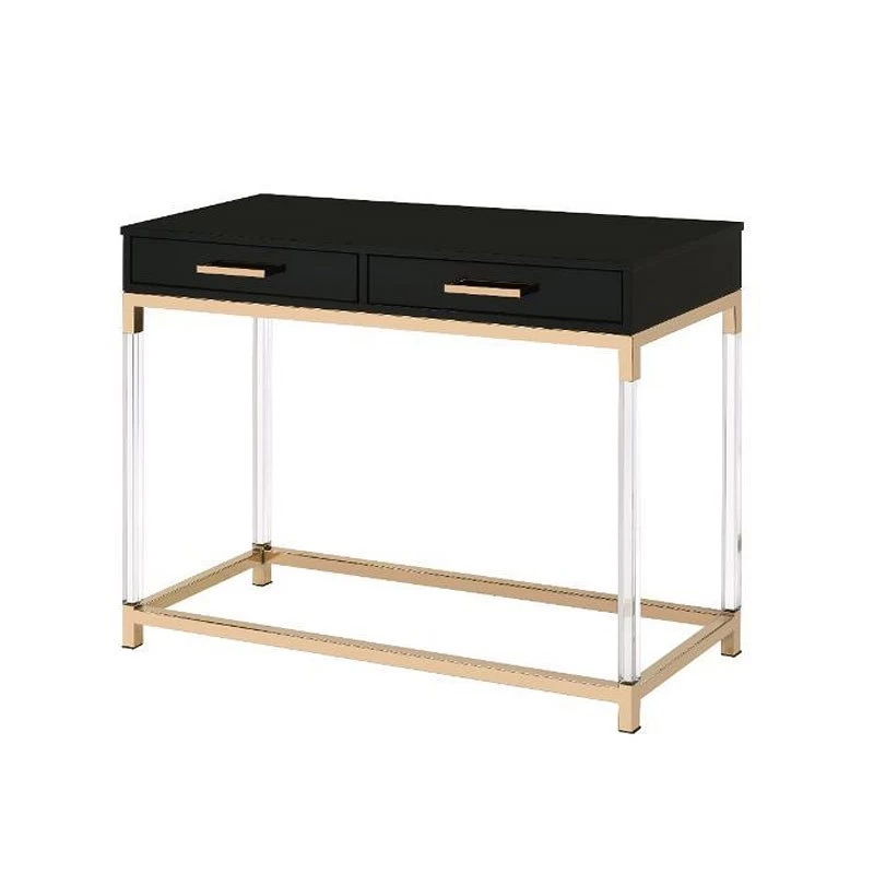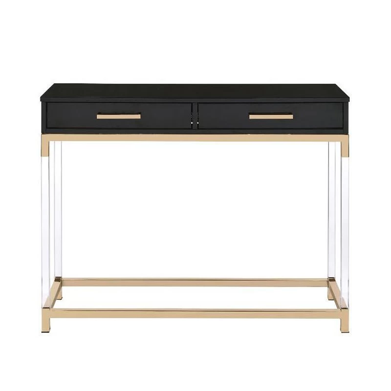 - OverviewMatch your seating ensemble with this Adiel Occasional Table Collection by Acme Furniture to lend a modern flair to your living room. The beautiful metal frame in gold finish adds a touch of glam to this contemporary piece, with clear acrylic legs that elegantly frame the design.