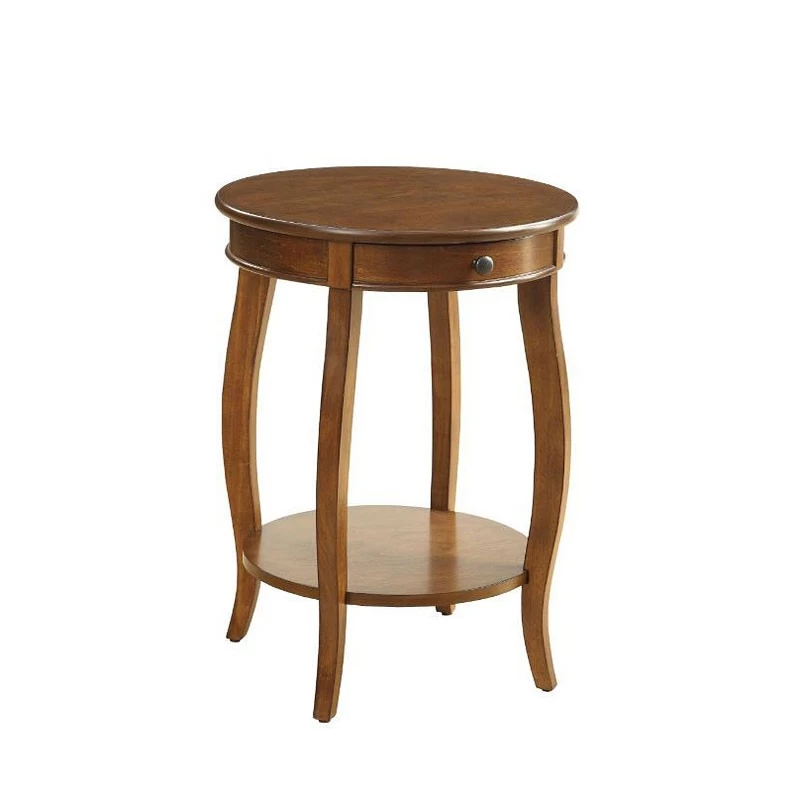 - OverviewAdd a little storage to your living room with this Alysa Accent Table by Acme Furniture, which is designed to have a lower storage shelf and a center drawer for remotes or other items. The transitional silhouette in a walnut finish brings style and function at arm’s length. This table will cast a timeless feel and mix with almost any decor style.