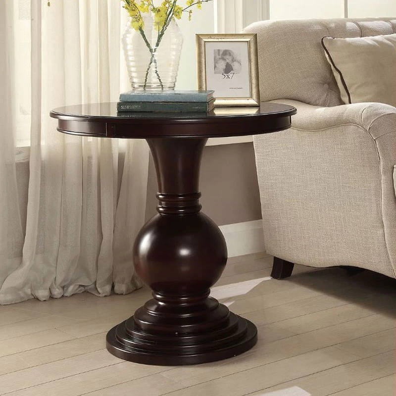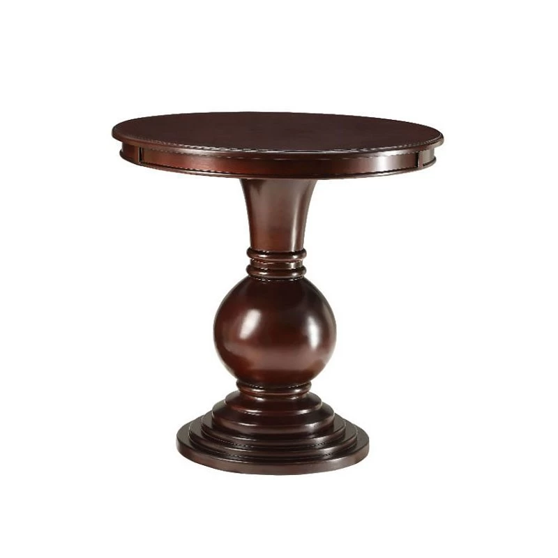 - OverviewThis Alyx Accent Table by Acme Furniture makes a statement in your modern farmhouse or French country cottage living room with its robust base and purposefully distressed espresso finish. This pedestal table has a circular top that sits on a turned base. Its base is narrow at the top, flows into a sphere in the middle, and widens at the bottom, adding support and traditional style to the overall piece.