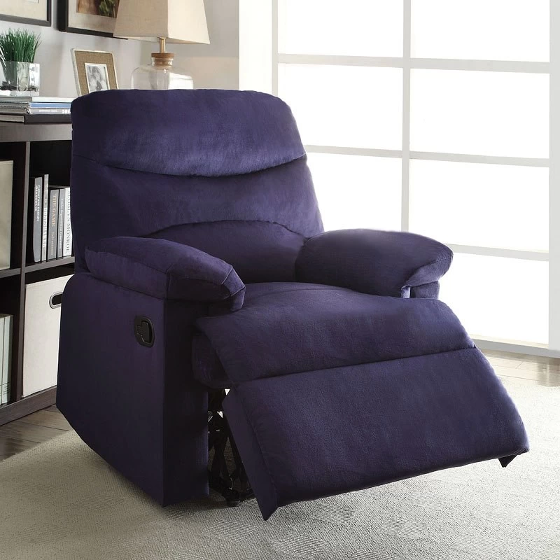 - OverviewThe lovely Arcadia Recliner by Acme Furniture offers comfort, style and value for any home. A smooth fabric seat cushion provides relaxation from seat to toe with an easy to reach external handle for operating the reclining mechanism.