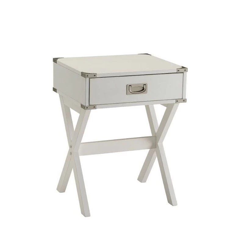 - OverviewBring the trending contemporary style into your home with this updated Babs Accent Table by Acme Furniture. With featuring metal corner strapping and a flush mount drawer pull which is true to style. We love how this table looks beneath a lamp and framed photo in your living room or bedroom.