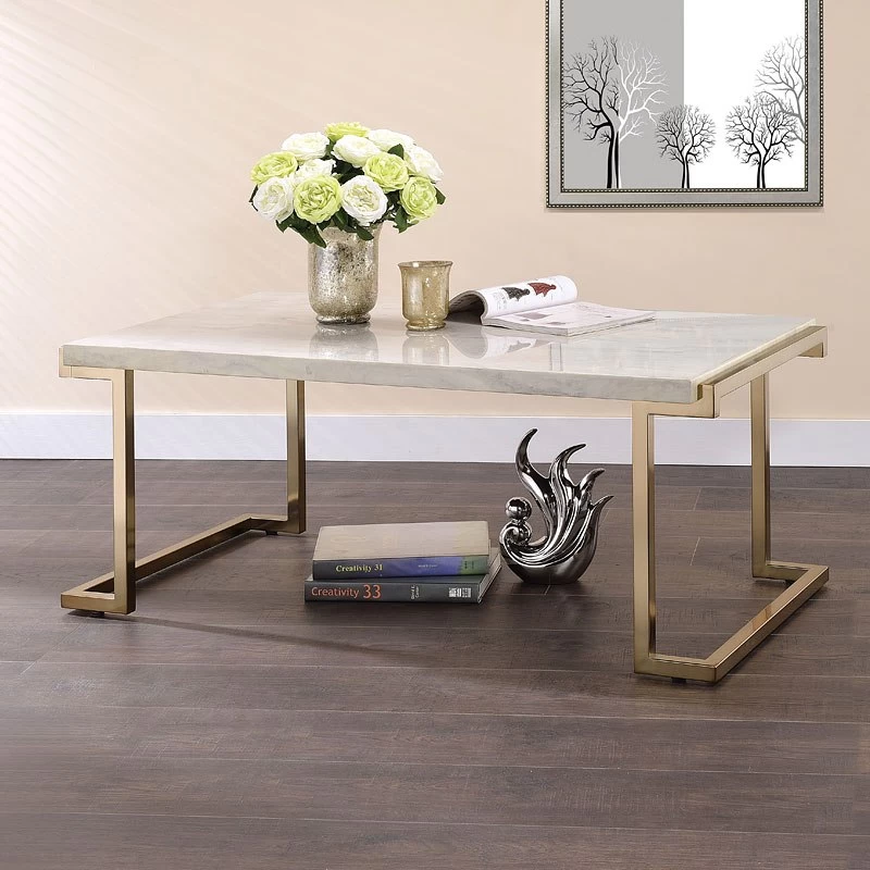- OverviewThe Boice II Occasional Table Collection by Acme Furniture features a trending combination of sleek and contemporary style, with faux marble top and champagne finish metal base. The modern lines of the base with its open return base and simple form top, make for an modern feel and show off key elements of modern.
