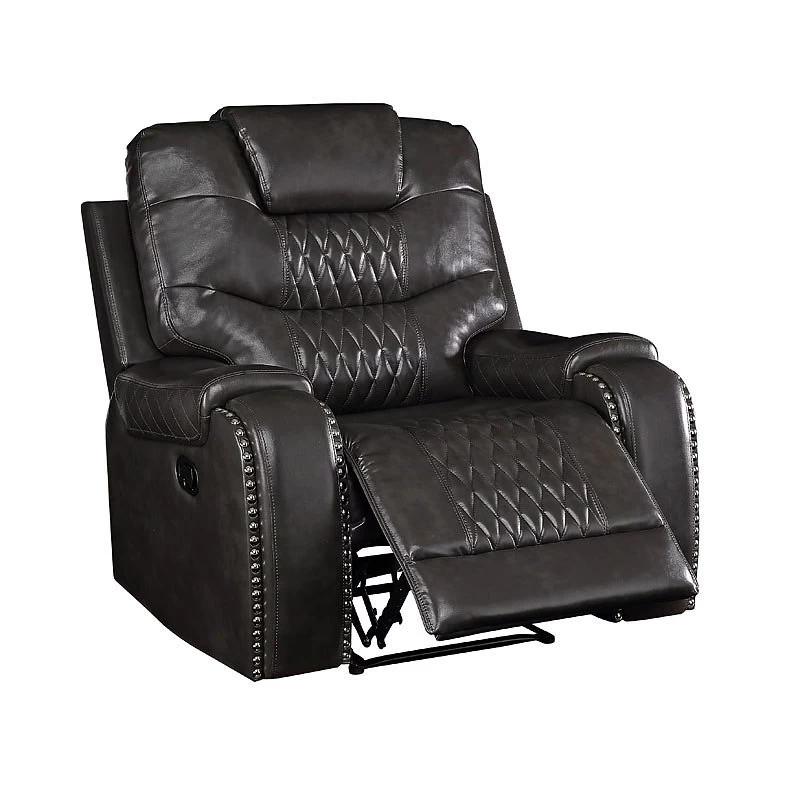 - OverviewIf you’re serious about comfort, then the Braylon Living Room Collection by Acme Furniture is made for you. The magnetite PU upholstery is a slick dark gray color that keeps your entertainment area looking sharp. In addition, the diamond tufted pattern in the tight back and seat cushions add not only great visual interest but a sense of structure to the collection design. Each piece in this collection features pillow top armrests and external push-button latches for convenient reclining motion.