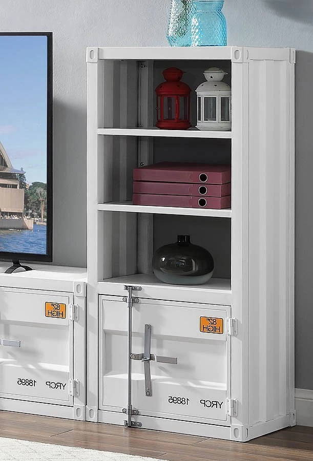 - OverviewAnchor your entertainment space in effortless style with the Cargo Entertainment Collection by Acme Furniture. The impressive design elements mix contemporary and industrial themes into one impressive transitional look. The collection features a unique fun finish with metal accents that will revitalize any space. With multiple storage compartments and open media shelves, there is plenty of space for your media components and collectibles.