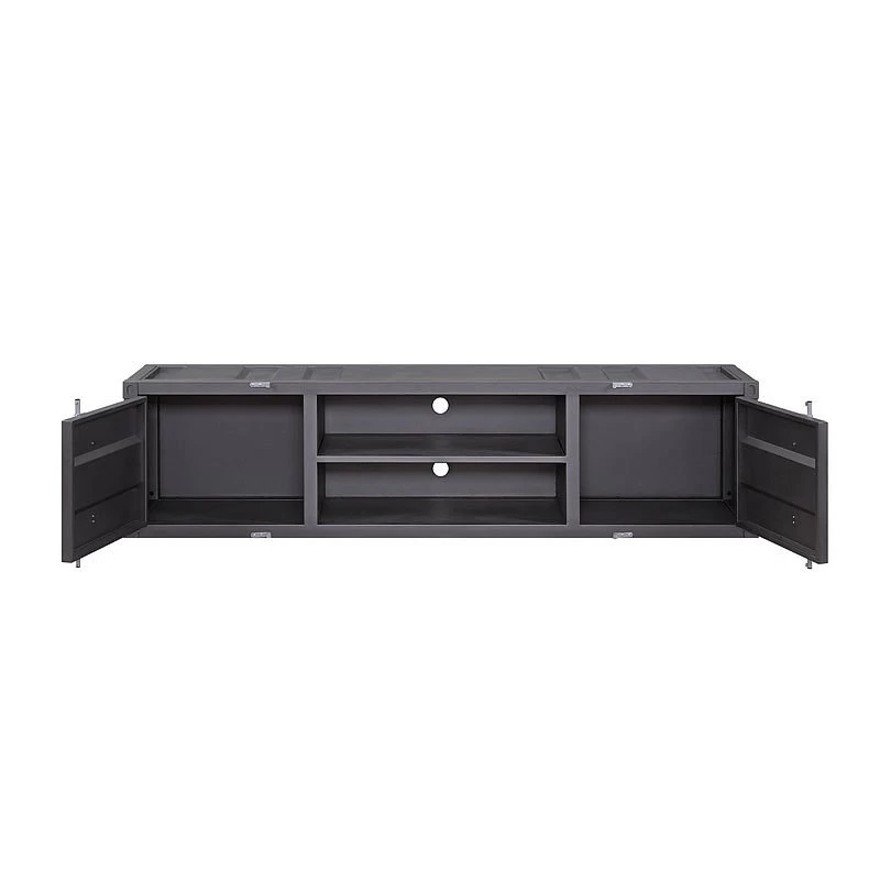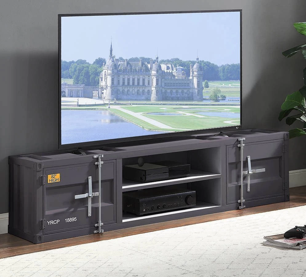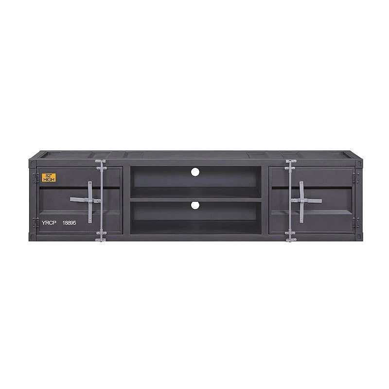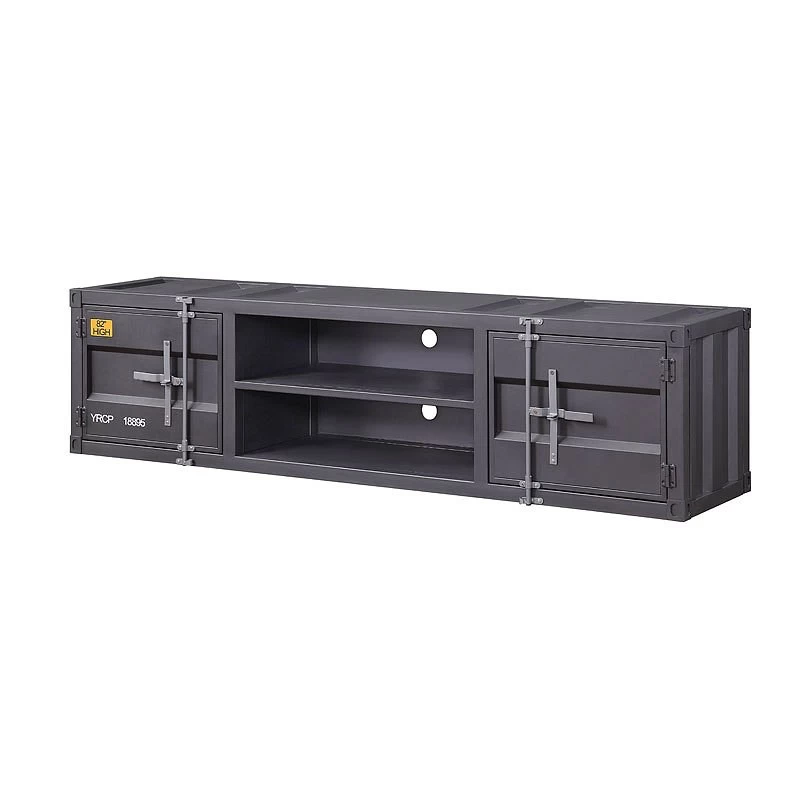 - OverviewAnchor your entertainment space in effortless style with the Cargo Entertainment Collection by Acme Furniture. The impressive design elements mix contemporary and industrial themes into one impressive transitional look. The collection features a unique fun finish with metal accents that will revitalize any space. With multiple storage compartments and open media shelves, there is plenty of space for your media components and collectibles.