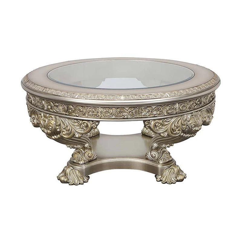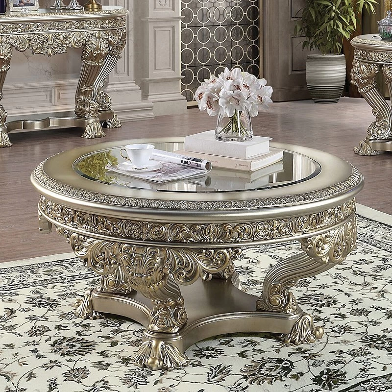 - OverviewLavish and grand, the Danae Occasional Table Collection by Acme Furniture offers the right amount of wow factor that your living space needs to create a classy home. The antique champagne and gold finish enhances the ornate carvings on the base and apron of the table. Display books and decor items on the ample tabletop.