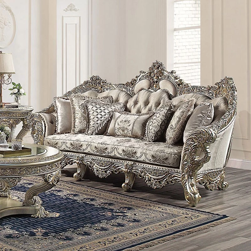 - OverviewBring a touch of divine royalty into your living space with the Danae Living Room Collection by Acme Furniture. Beautifully designed with over-the-top crown and floral moldings to reflect the inner royal in you. Classic features such as a tufted backrest help enhance the piece. The sturdy wooden inner frame paired with the comfortable cushions make for the perfect entertaining collection.