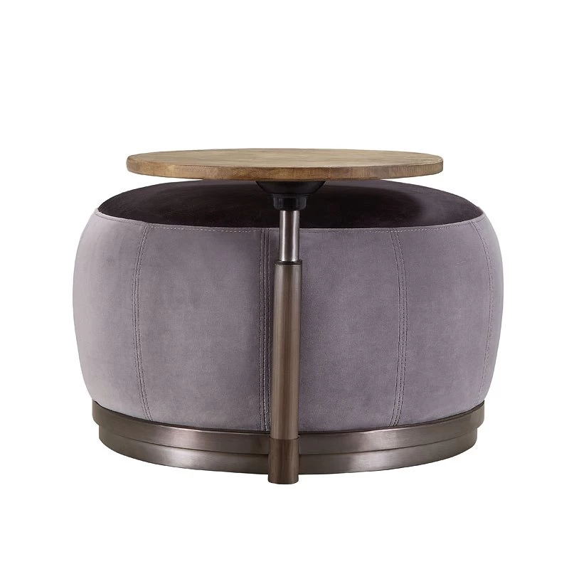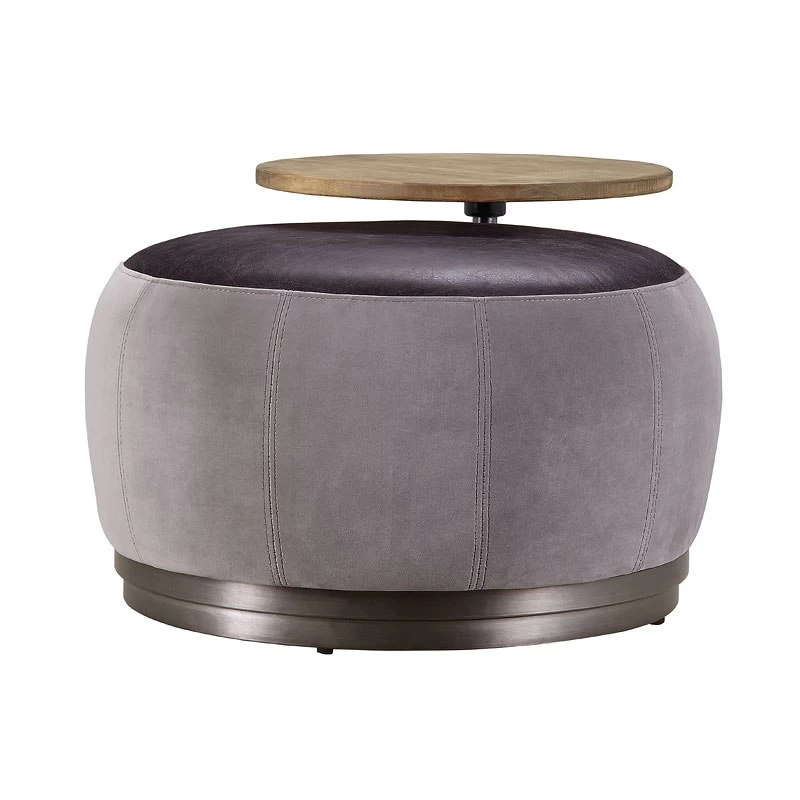- OverviewThe Decapree Living Room Collection by Acme Furniture may steal the spotlight in your living room. Upholstered in antique slate top grain leather and gray velvet, the stunning contrast between color and texture beckons you to explore all the features that make this lounge set unique. In addition, full foam seat construction, as well as a side table attached to the ottoman, takes the Decapree from unusual to unparalleled.