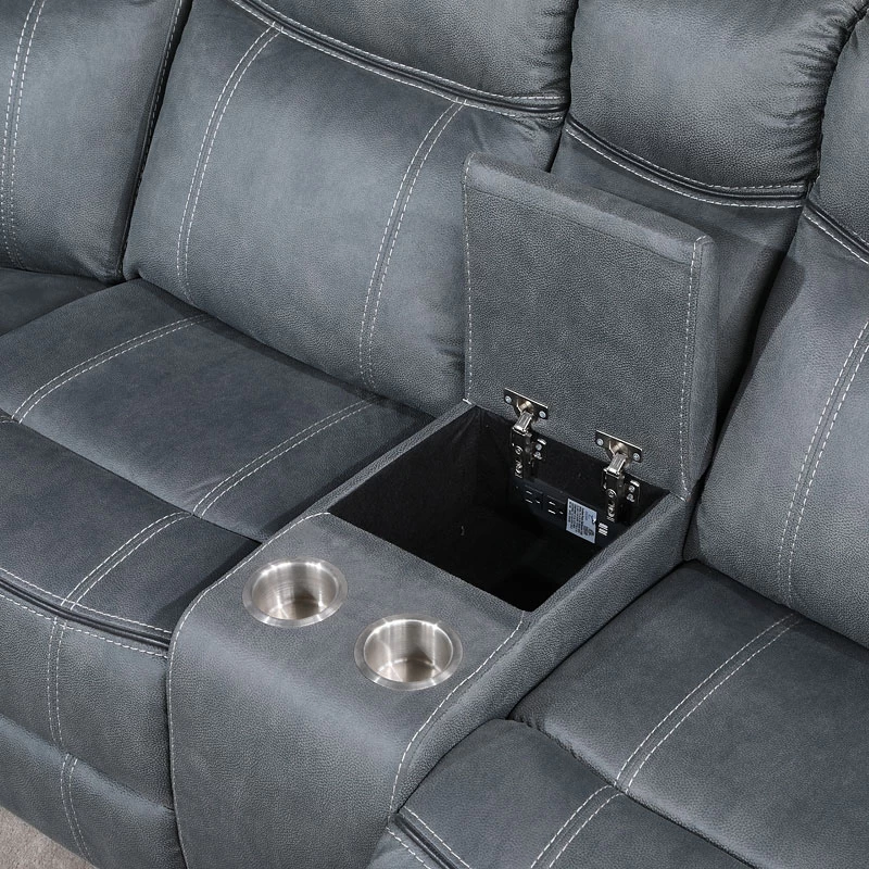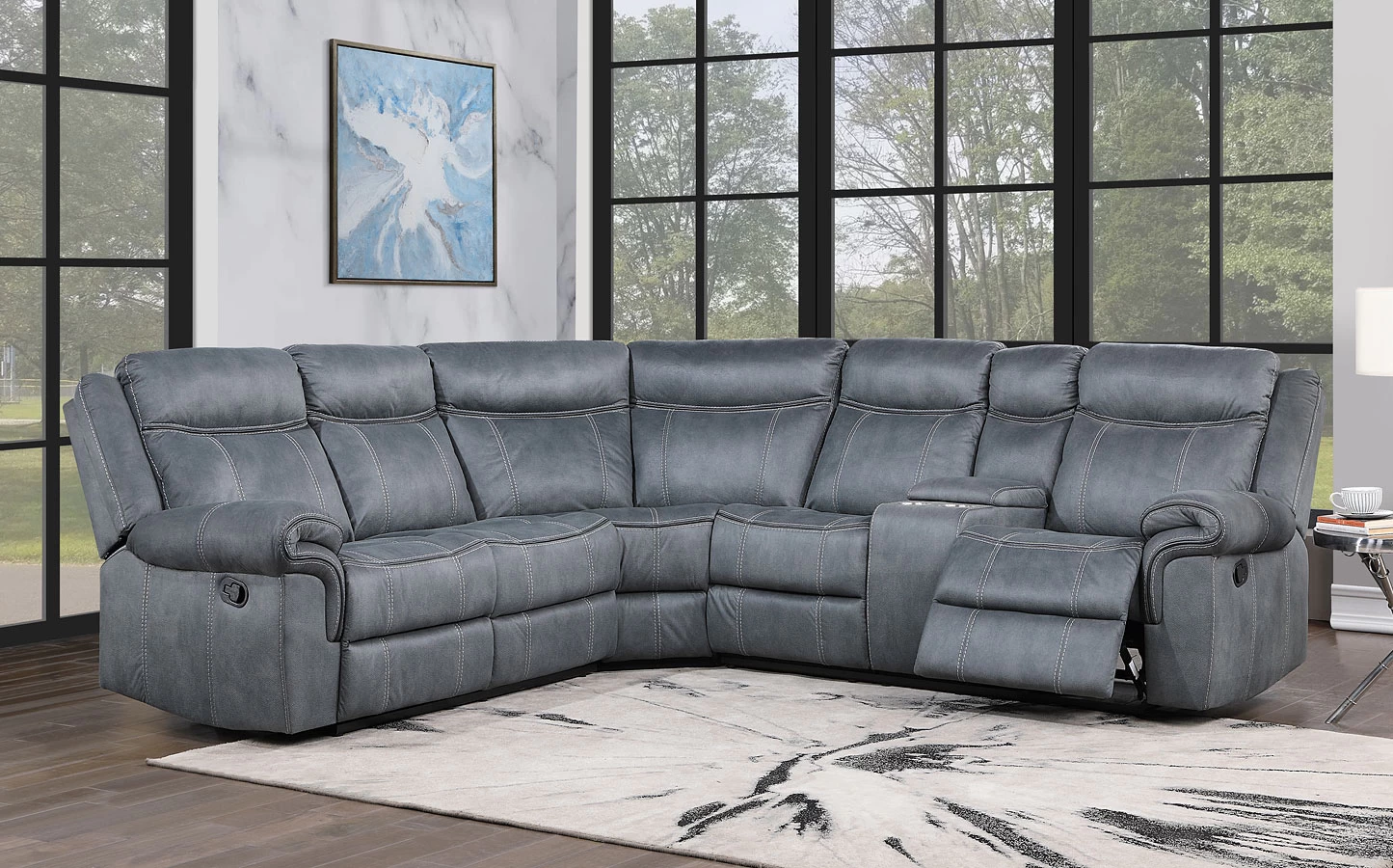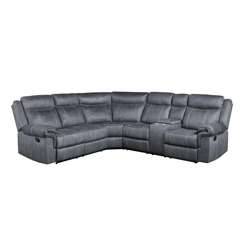 - OverviewThe Dollum Sectional by Acme Furniture is ideal for those who seek casual comfort in their home. At a glance, the sectional shows off its comfortable design with its plush pillow arms, plush backrests and headrests, and reclining seating. Contrast stitching provides a touch of detailed texture to create visual depth against the two-tone velvet. The sectional features a console with two cupholders and storage with USB and AC power ports, perfect for your casual home.