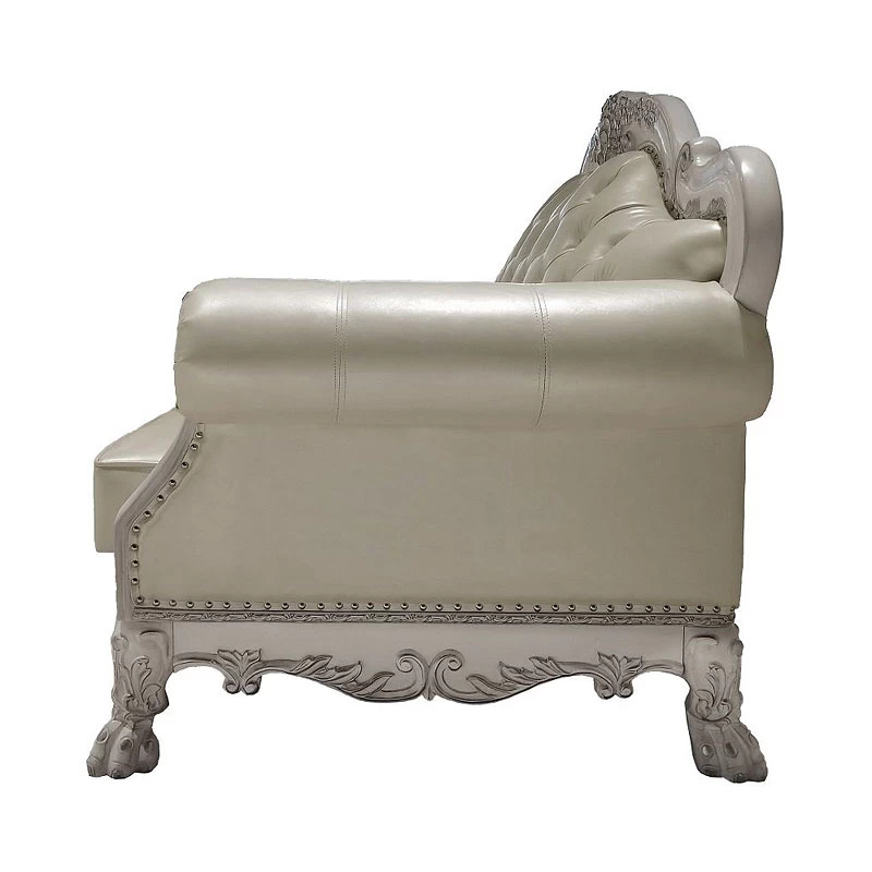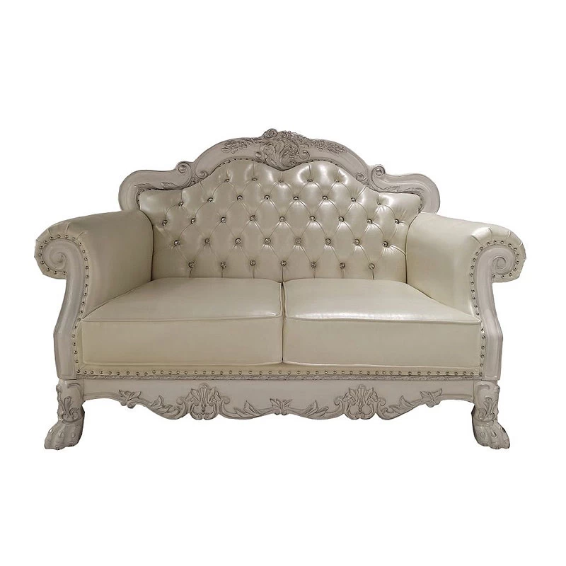 - OverviewAdd old world charm in your home with the Dresden Living Room Collection by Acme Furniture. It takes inspiration from a Victorian Era fainting couch with its immaculate features. The bone white finish and Leather Aire upholstery compliment the beautiful moldings. The moldings have hand-brushed silver accents to really make them pop. Crystal-like button tufting adds a regal touch.
