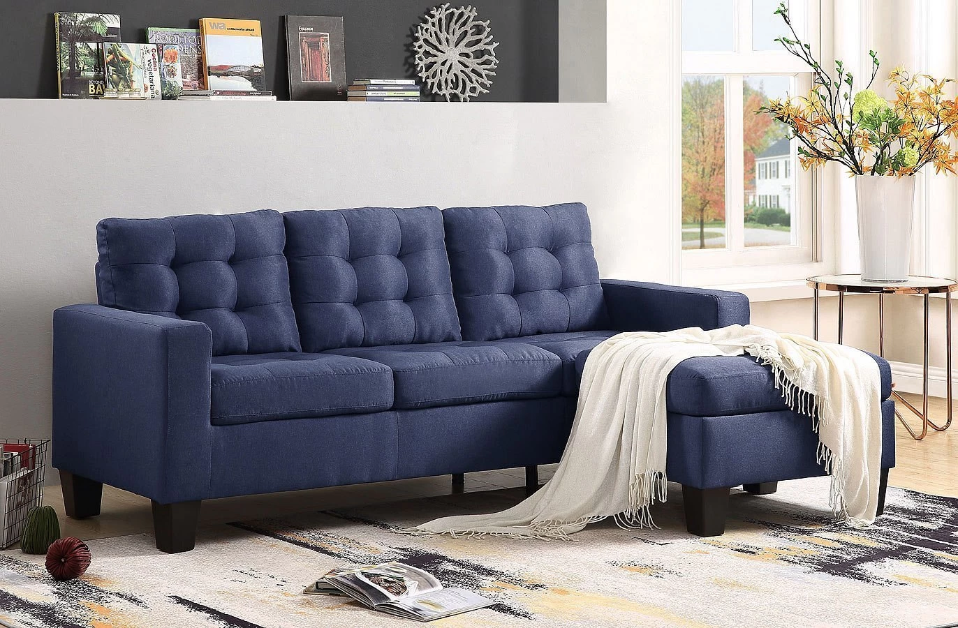 L-shape sectional sofa and reversible ottoman (no storage)