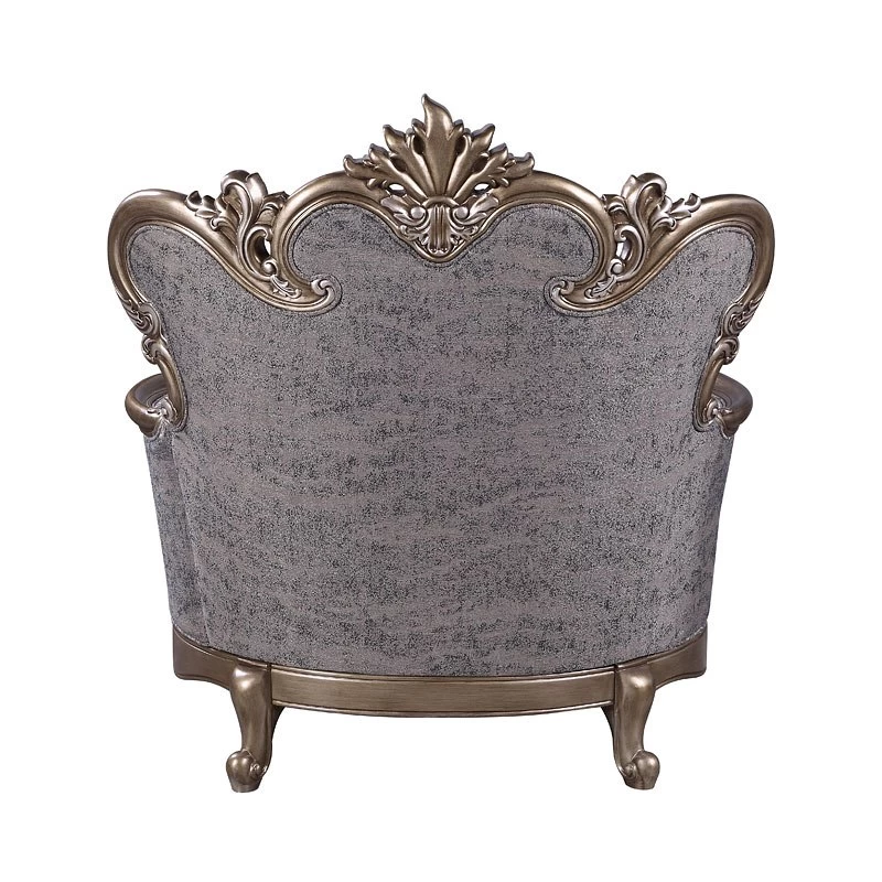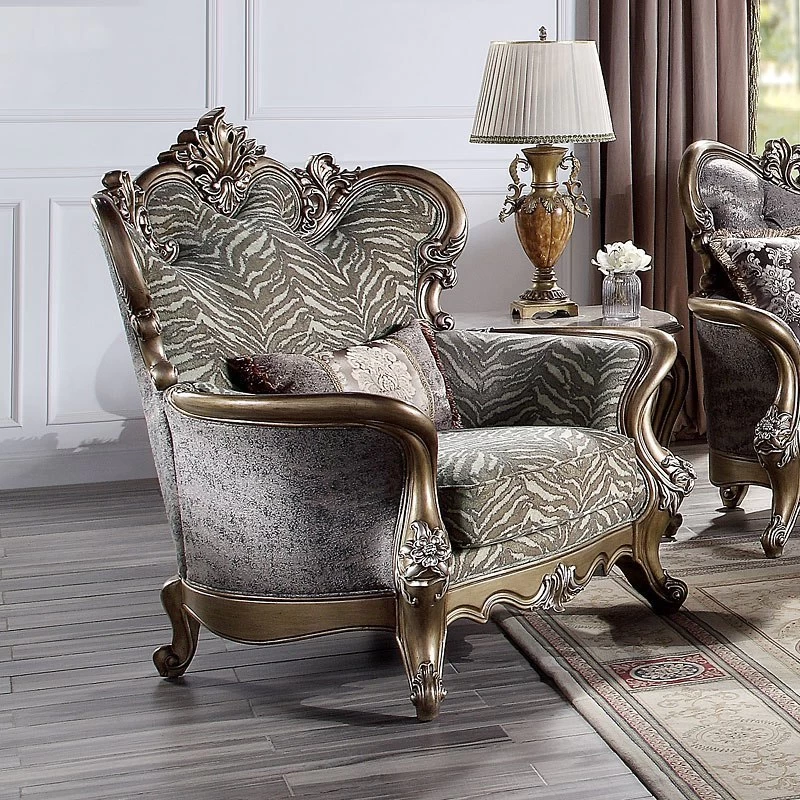 - OverviewAn assortment of materials and patterned hues highlight this elegant, traditional Elozzol Living Room Collection. Plush and luxurious with rich upholstery, it offers an exquisitely comfortable space to lounge and relax after a long day. This collection flaunts a rich, ornate frame in an antique bronze finish featuring intricate, detail-carved wooden trim and claw feet for a tasteful and timeless look. With its stylish, patterned pillows and thick, plush cushions, this magnificent collection gives any living room an opulent and inviting atmosphere. Turn your living room or family room into the relaxed centerpiece of your home with the Elozzol collection.