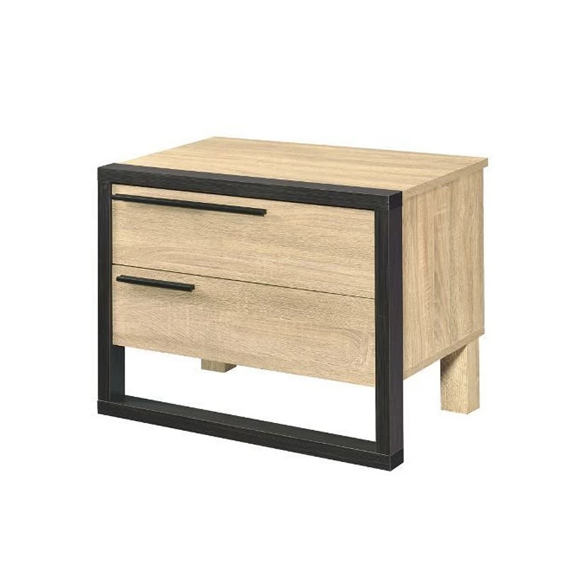 - OverviewFeaturing a rustic wood frame embellished with some industrial metal accents, the Erasto Accent Table by Acme Furniture achieves an aesthetic balance that blends into any room decor. Natural wood tone paired with metal hardware in a rich black finish adds a uniquely attractive contrast to this table. There are two storage drawers with a pull-out drawer that help you to organize household items and supplies.
