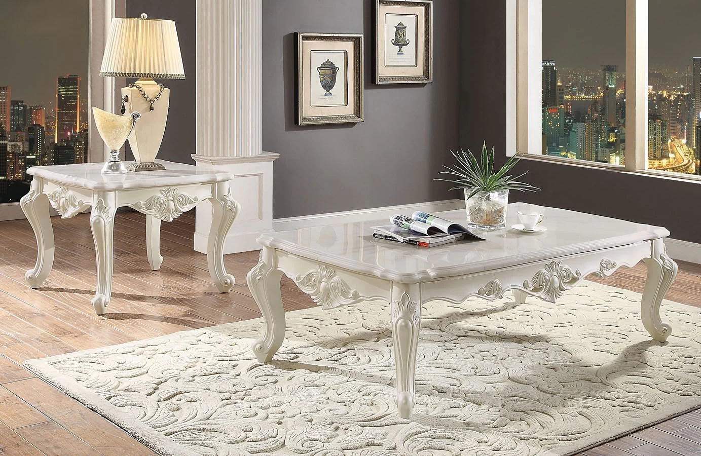 - OverviewExclusively designed and filled with romantic spirit, this beautiful Erigeron Occasional Table Collection by Acme Furniture features raised and scrolled floral motifs in an antique pearl finish. This stylish and detailed collection will add elegance to any living room decor.