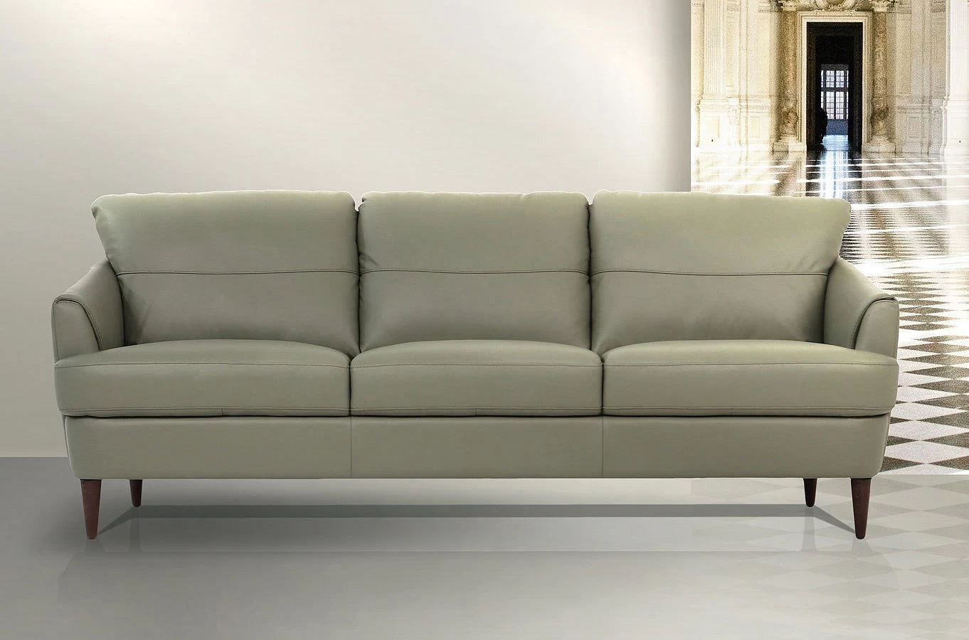 - OverviewThe Helena Living Room Collection by Acme Furniture is one you’ll want to spend lots of time in. Designed with contemporary fashion, this beautiful moss green leather collection features a “T” shaped cushion with contrast tone stitching and unique tapered wood legs. Its deep, comfy seat and slope style padded arms give it an incredible sink-right-in quality that’s perfect for the whole family.
