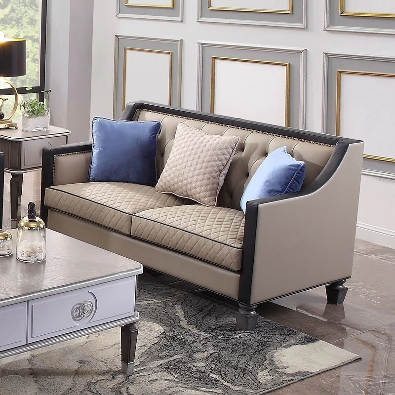 - OverviewA combination between simplicity and exquisite; this House Beatrice Living Room Collection by Acme Furniture offers a glamorous focus. Solid structure beautifully upholstered with faux leather. Featuring a button tufted backrest and nail-head trim, the hand-crafted pieces enhance the beauty of the detailed woodwork and craftsmanship. Superb in its attention to detail, every inch is a statement of outstanding elegance and style.