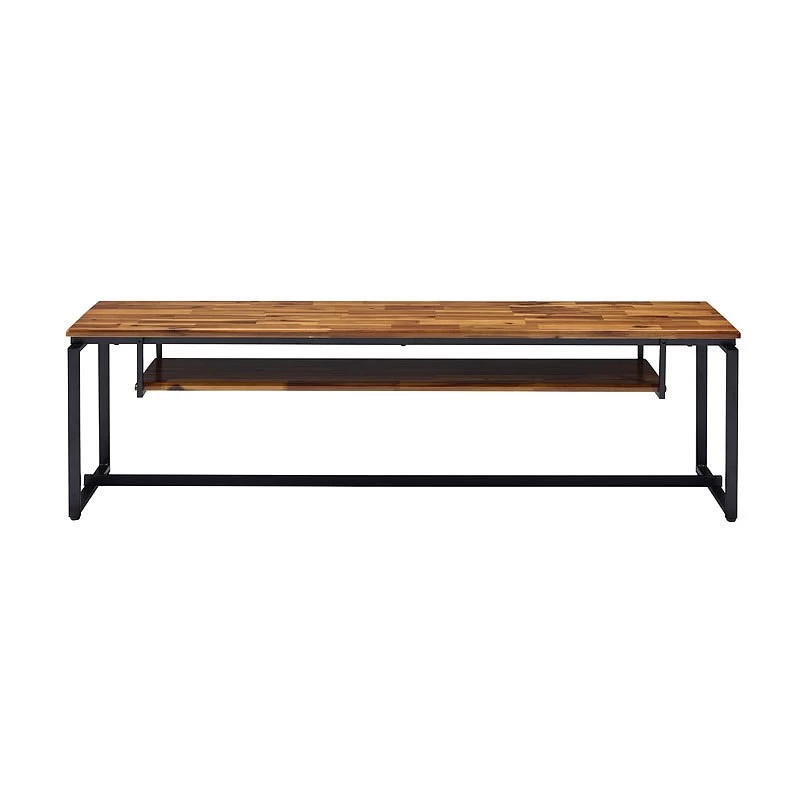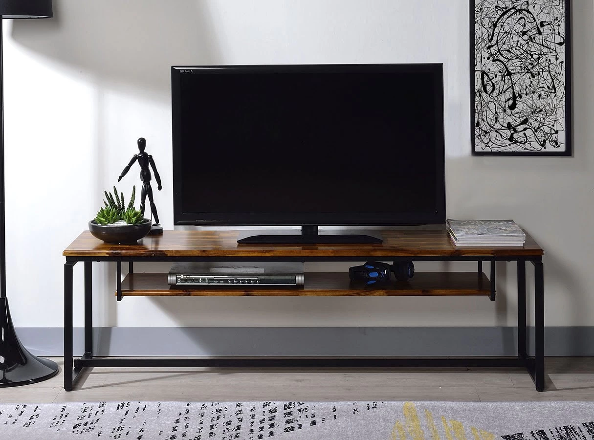 - OverviewAdd a touch of modern flair to your living room with this Kersey TV Stand by Acme Furniture. Expertly crafted from selected wood and metal tube, this piece features a shelf for accommodating a cable box, media accessories, or remotes. With the open-back design, cables can run through easily.