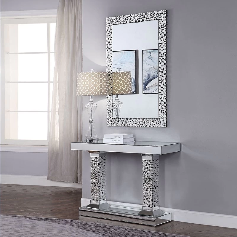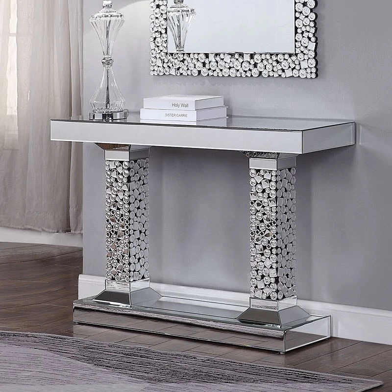 Mirrored column base w/ faux gems inlay and 4mm clear tempered glass - DepartmentSofa Tables