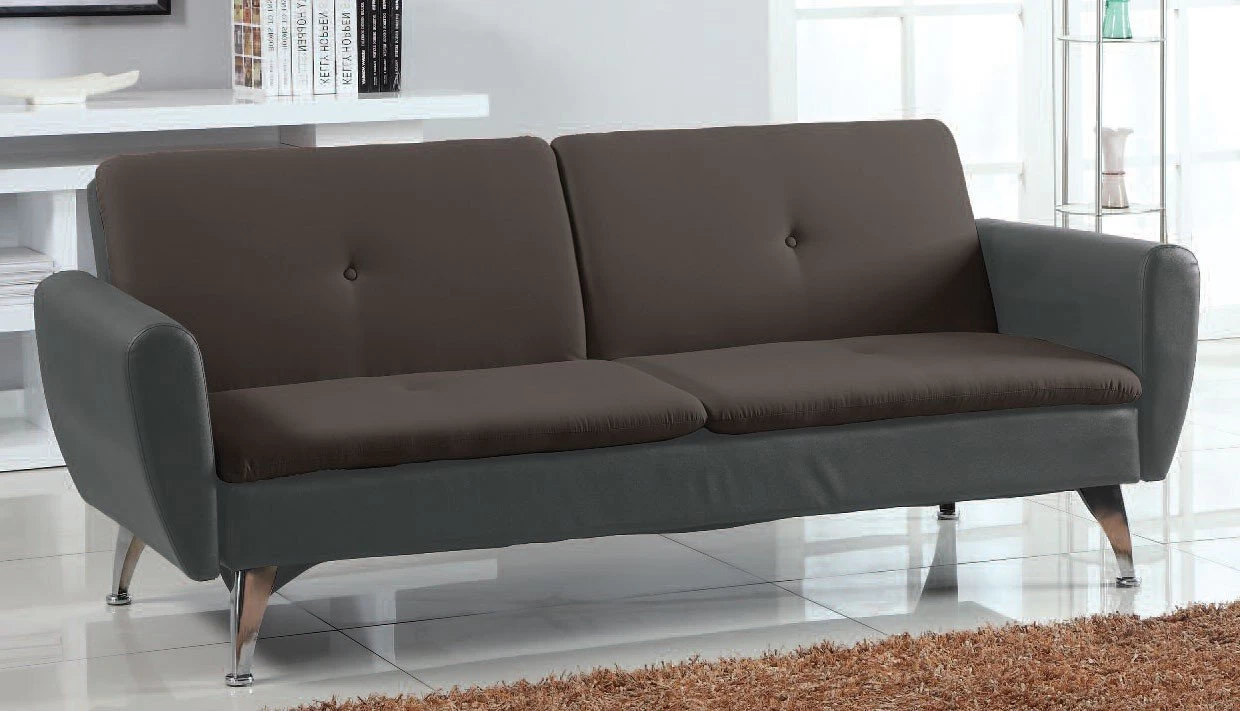 - OverviewThe Kimber Adjustable Sofa by Acme Furniture features black PU and chocolate linen upholstery, tufted back and seat cushions, and chrome legs. The Sofa can be easily converted to a bed at night by dropping the back cushion. This casual contemporary sofa will be a nice addition to your home, helping you make the most of your space.
