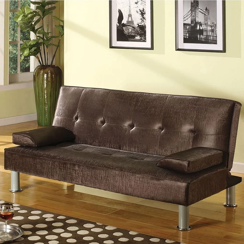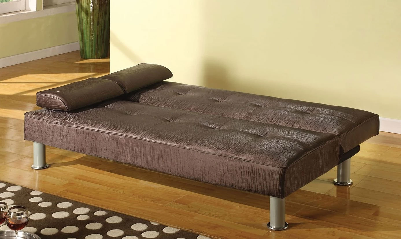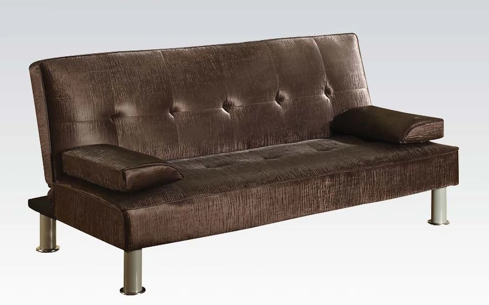 - OverviewThe Korb Adjustable Sofa by Acme Furniture features PU upholstery, stitching, tufted back and seat cushions, chrome finished legs and chocolate finish. The Sofa can be easily converted to a bed at night by dropping the back cushion. Add this wonderful piece to your home, apartment, or dorm for a room that everyone will enjoy.