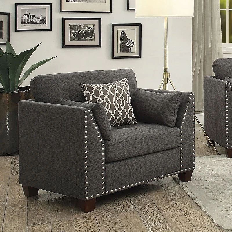 - OverviewMakes a chic addition to your living room or office. This Laurissa Living Room Collection by Acme Furniture features tufted button on the cushion, clean lines with a well-padded seat and back. Fully upholstered with finely threaded linen and constructed with solid wood, this ensemble provides long-term durability and stability. This is perfect for a movie night or family gatherings alike.