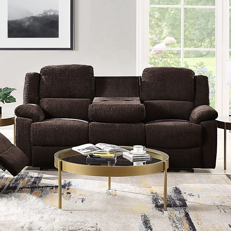 - OverviewUpholstered in velvety brown chenille, the Kalen Living Room Collection by Acme Furniture is not only supremely comfortable but also durable. This is great news because once you sink into one of these pillow seats, you won’t want to get up! The reclining mechanism is right within hand’s reach with the external pull-handle latches. Bring home the unbeatable combo of comfort and convenience with Kalen!
