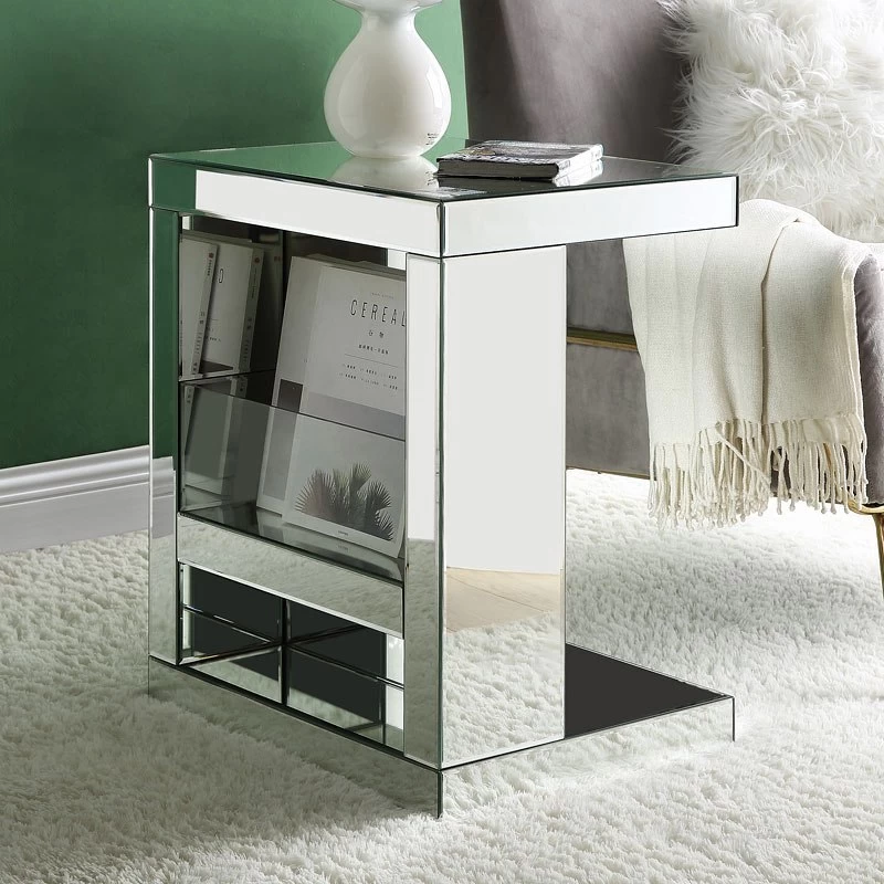 - OverviewBeauty, simplicity, and functionality combine to create the Meria Accent Table by Acme Furniture that will truly become one of the main focal points in your room areas. A clean-lined table frame in mirrored finish creates a modern glamour look. The tempered glass surface makes it more clear and attractive. Add sparkle into your life with this striking Meria Accent Table.