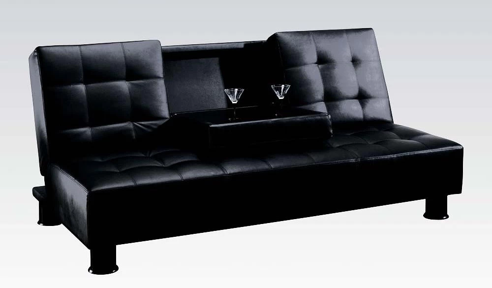- OverviewThe Monticello Adjustable Sofa by Acme Furniture features PU upholstery, cup holders and black finish. The Sofa can be easily converted to a bed at night by dropping the back cushion. This casual contemporary sofa bed will be a nice addition to your home, helping you make the most of your space.