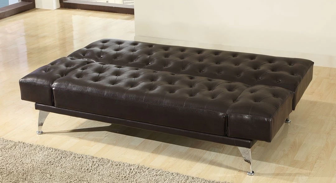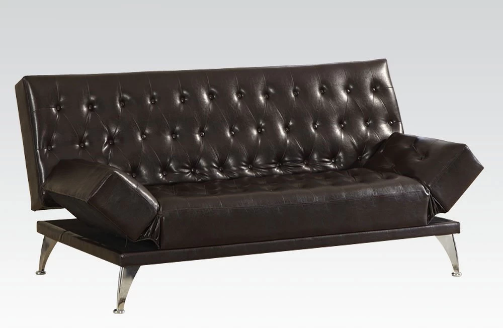 - OverviewThe Nasrin Adjustable Sofa by Acme Furniture features PU upholstery, tufted back and seat cushions, stitching and brown finish. The Sofa can be easily converted to a bed at night by dropping the back cushion. Add this wonderful piece to your home, apartment, or dorm for a room that everyone will enjoy.