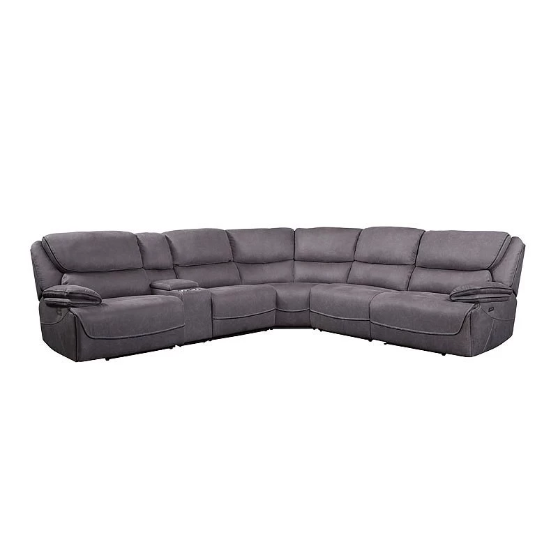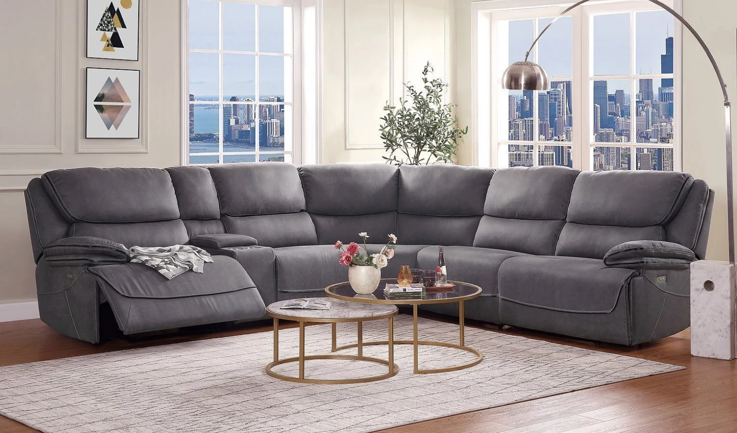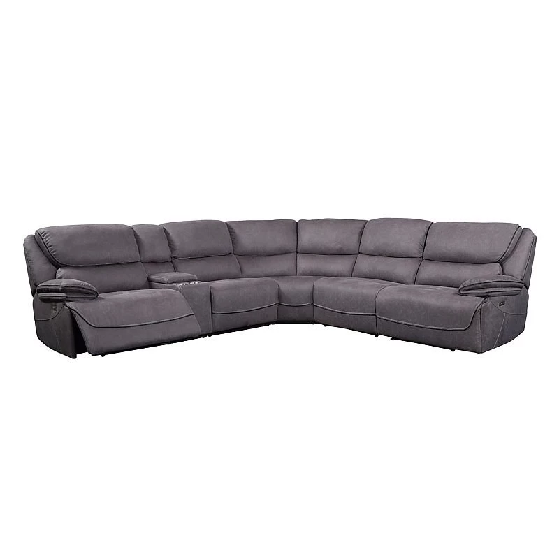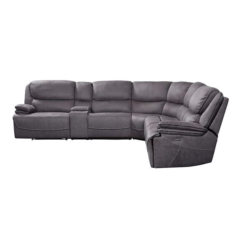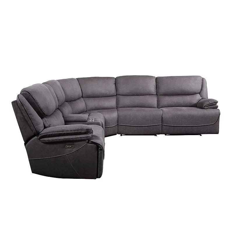 - OverviewThe Neelix Sectional by Acme Furniture is one you’ll want to spend lots of time in. This beautiful “L” shaped sectional features seal gray fabric upholstery with three power reclining seats, an armless stationary seat, a wedge, and a storage console. This gorgeous piece provides luxurious and stable support and spacious seating for your family and friends.