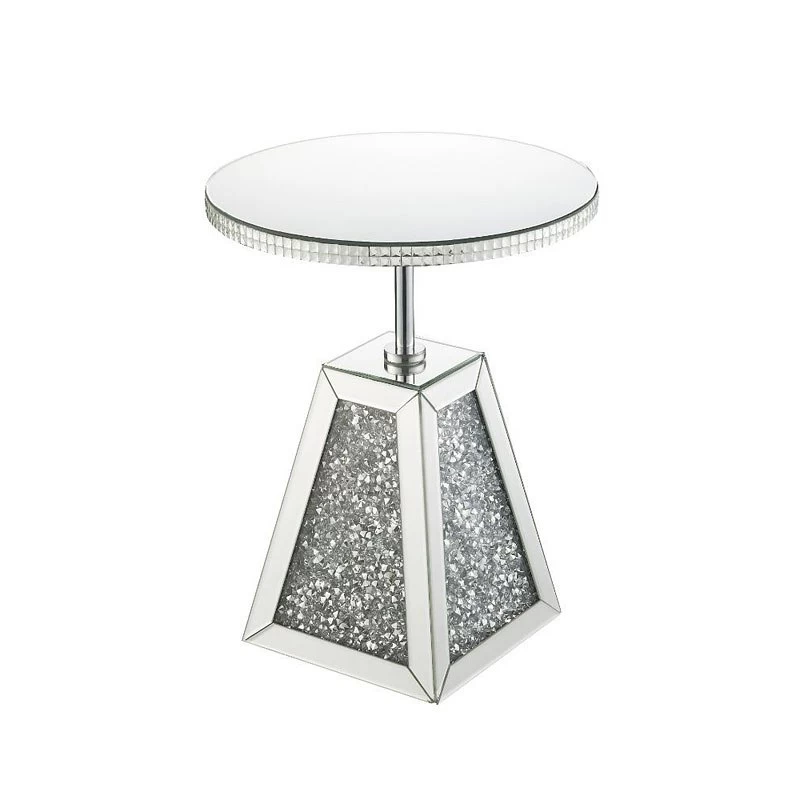 - OverviewThe Noralie Accent Table by Acme Furniture is perfect for your modern grace home. This mirrored faux diamond pedestal features an elegant twist base. Place a lamp or plant on the rounded surface. Use in any room to enhance your decor.