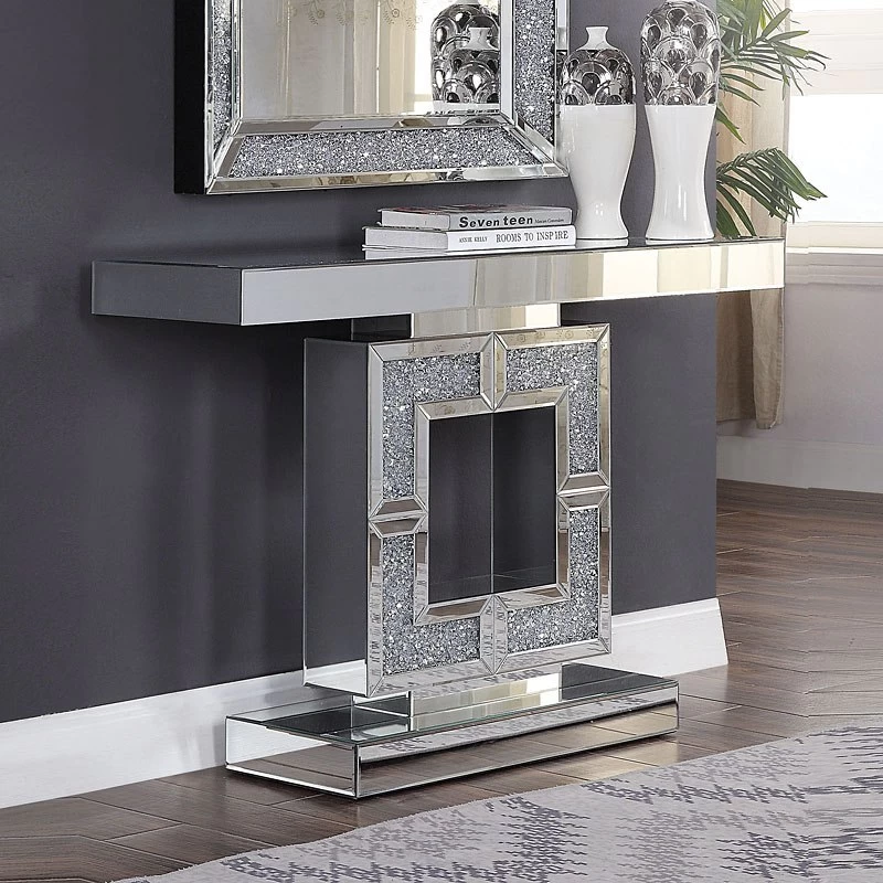 Mirrored pedestal w/ faux diamonds inlay and 4mm clear tempered glass - DepartmentSofa Tables