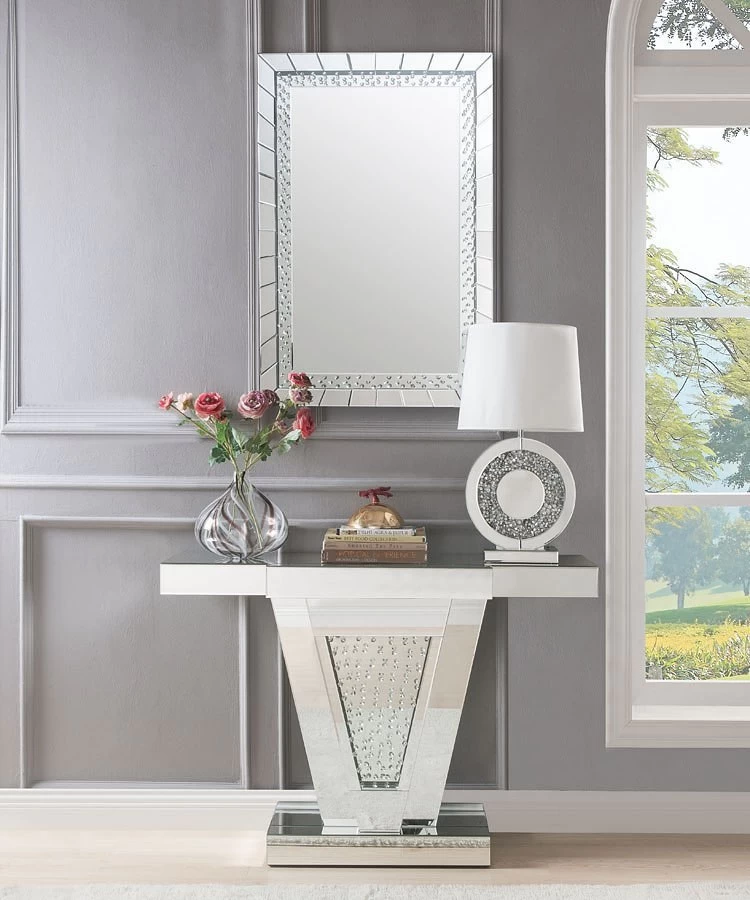 - OverviewThe Nysa Geometric Shape Console Table by Acme Furniture is perfect as the center of attention in your room.