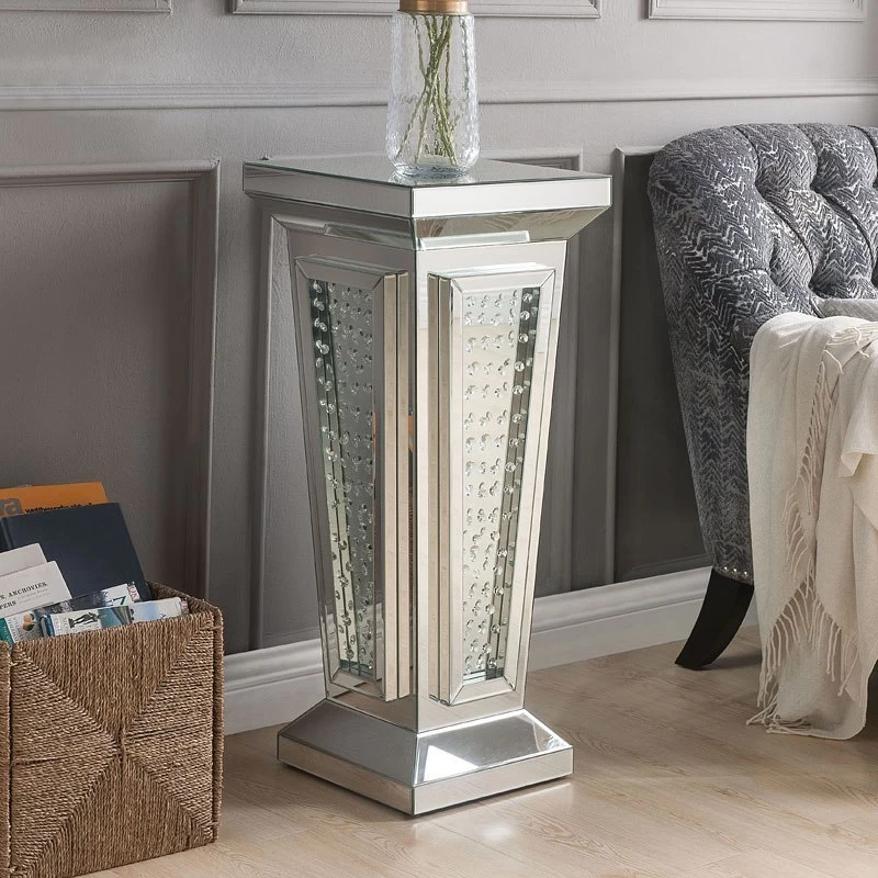 Mirrored pedestal: column with 4mm clear glass and faux crystal inlay - DepartmentAccent Tables