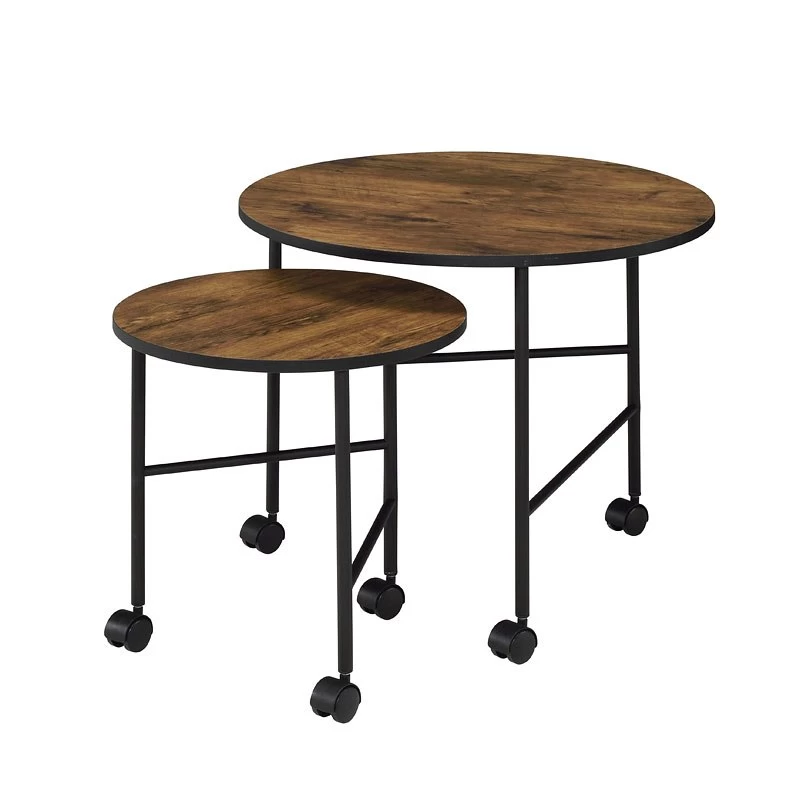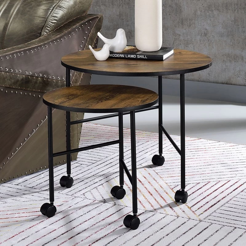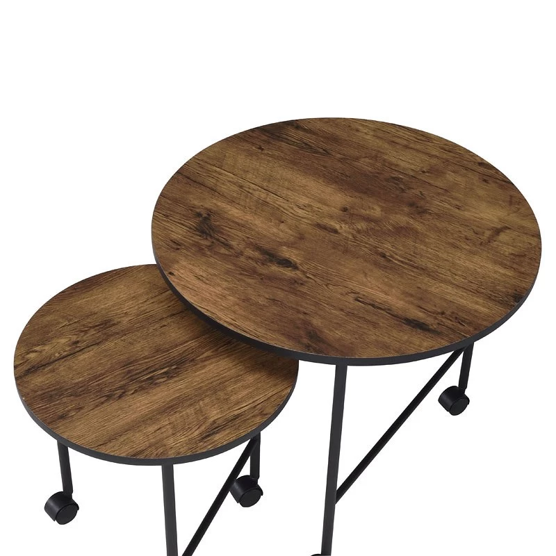 - OverviewA perfect pick for any contemporary aesthetic, this Oblis 2-Piece Nesting Tables by Acme Furniture features a wooden round top and a metal frame base. The straight-lined design of the base not only creates strength but also offers a modern look that updates any room. Suitable for use either together or separately, they will create an eye-catching balance in any room.