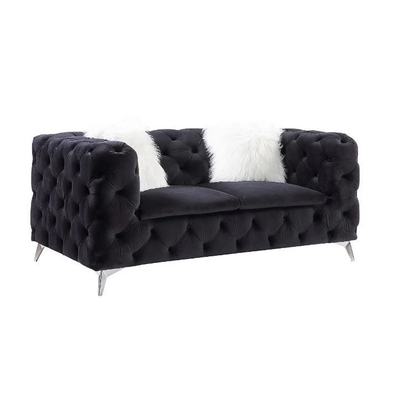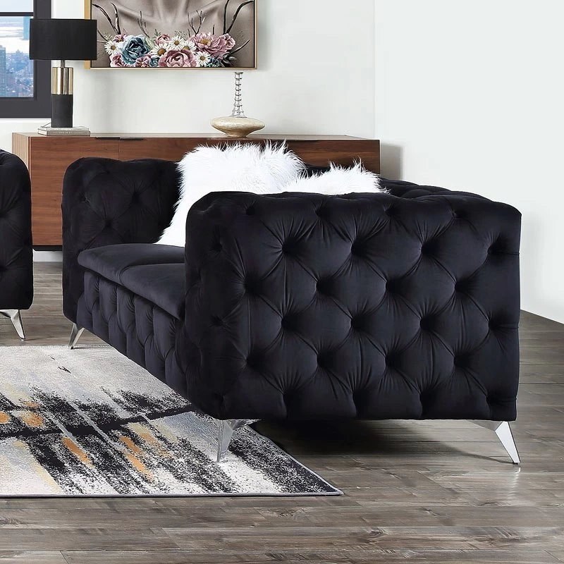 - OverviewGather your friends and family around for a game night or to enjoy a movie marathon. Take a look at this Phifina Living Room Collection by Acme Furniture; not only is it beautiful but also durable with its metal legs. Featuring button tufting for a look that works well in any contemporary setting. Each piece is upholstered in foam-filled velvet for an alluring feel. Its solid black tone is intended to blend in or stand out against your existing color scheme and decor.