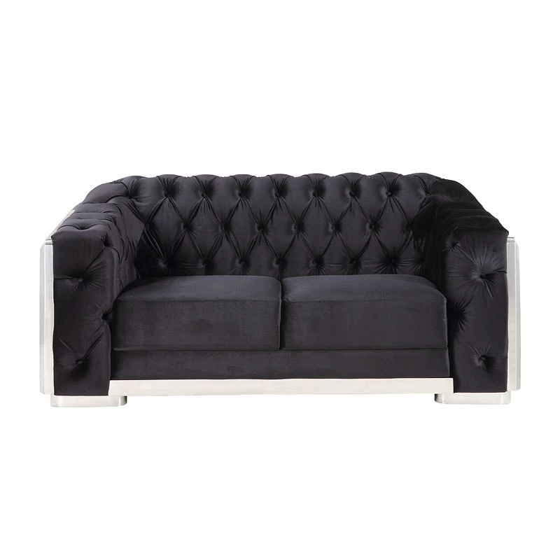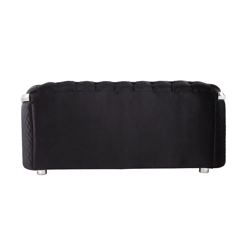 - OverviewA classic chesterfield design with a modern twist, the Pyroden Living Room Collection by Acme Furniture can work in both modern and traditional decor. Both glamorous and cozy with their overstuffed cushions and button-tufted backrest and arm. The outer body is accentuated with diamond stitching to give them more pizzazz. The metal trim is a contemporary feature that makes the black velvet stand out.