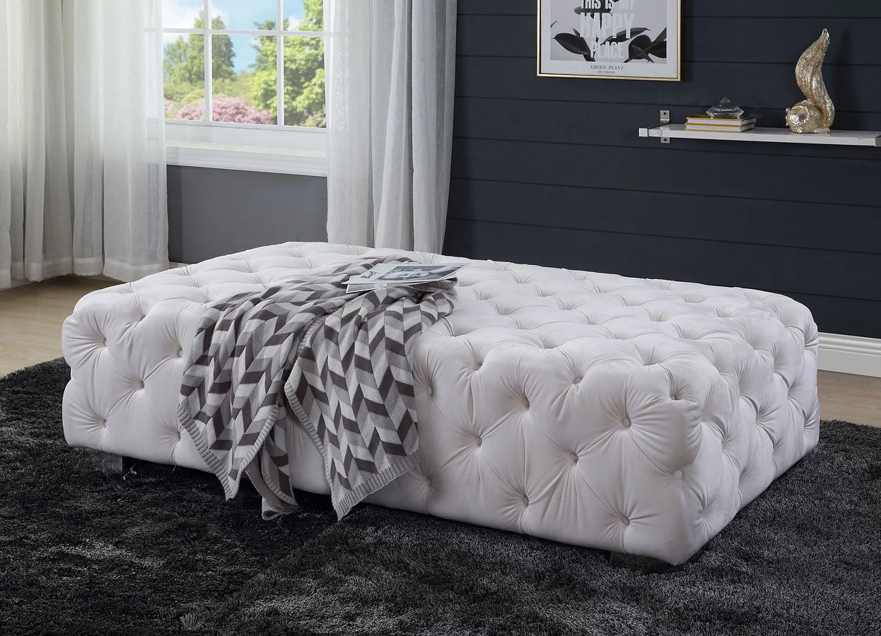 - OverviewComfort and elegance are in harmony with the Qokmis Living Room Collection by Acme Furniture. Smooth velvet upholstery fully covers all possible contact areas, with a chic button-tufted design enhancing a classic, timeless silhouette. Full-foam seat construction guarantees its comfort and durability whether you are sitting or lounging. The attached accent pillows are fluffy, sumptuous, and soft to touch. Surround yourself with tempting textures and sumptuous sheens that add charm to your space.