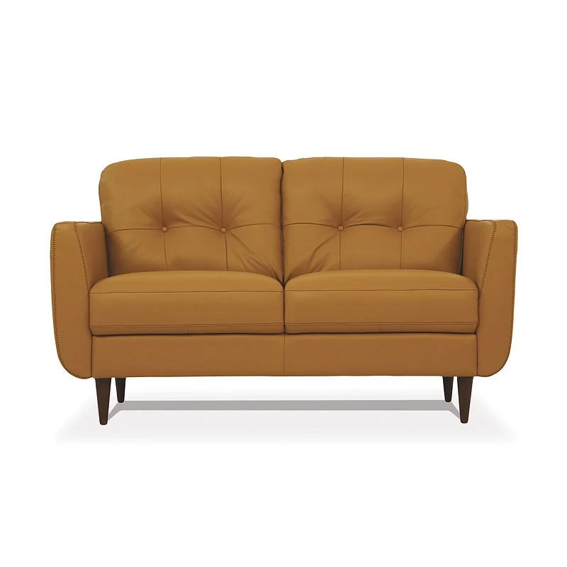 - OverviewCombining the stunning visual effect of art with lines and comfort, the Radwan Living Room Collection by Acme Furniture is one you’ll want to spend lots of time in. This beautiful leather collection features button-tufted cushions with contrast tone stitching and unique tapered wood legs. Its deep, comfy seat and flared padded arms give it an incredible sink-right-in quality that’s perfect for the whole family.