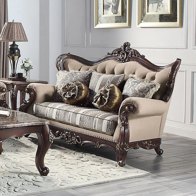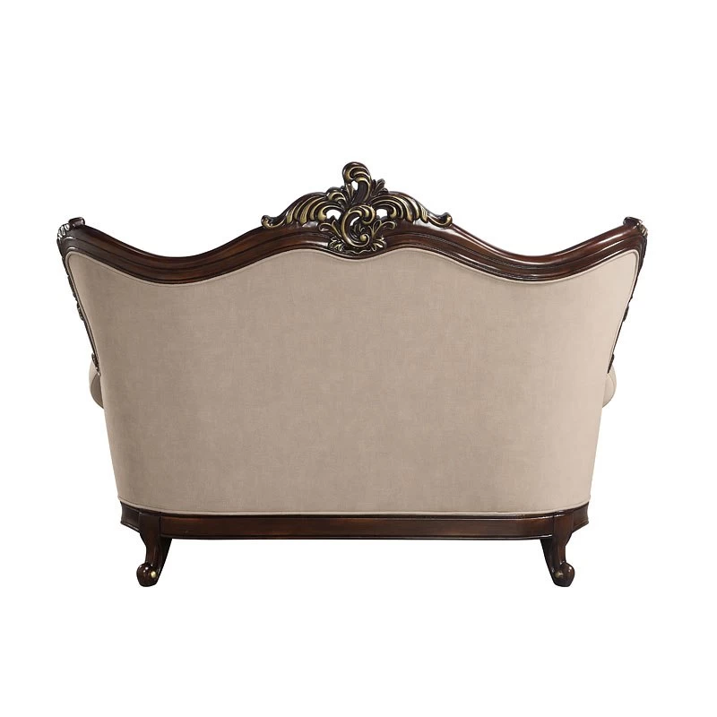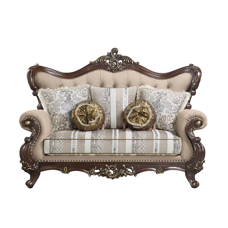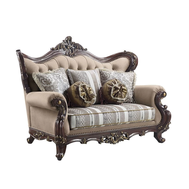 - OverviewEmbrace the essence of lavish living in your home with this Ragnar Living Room Collection by Acme Furniture. Highlighting detailed carvings that naturally follow with the elegant curves of the rolled arms that make a transition to the wood-trimmed arched backrest which features a camel hump wooden frame silhouette. The front legs and the front apron boast beautiful carved detail. Sit in comfort on the pocket coil seating and the included accent pillows.