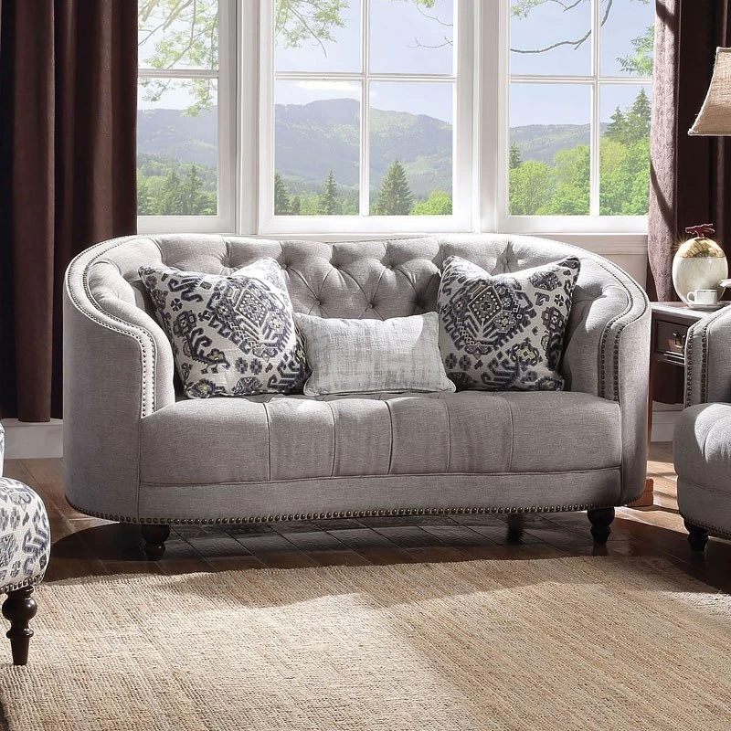 - OverviewModern fabric shades accented with tufted cushions, the eye-catching Cyndi Living Room Collection by Acme Furniture will vitalize any living space. The soft armrest shelter adds traditional style while quality fabric and the pocket coil supporting system deliver long-lasting durability. In addition, tight back and loose seat cushion create ultimate comfort for relaxation.