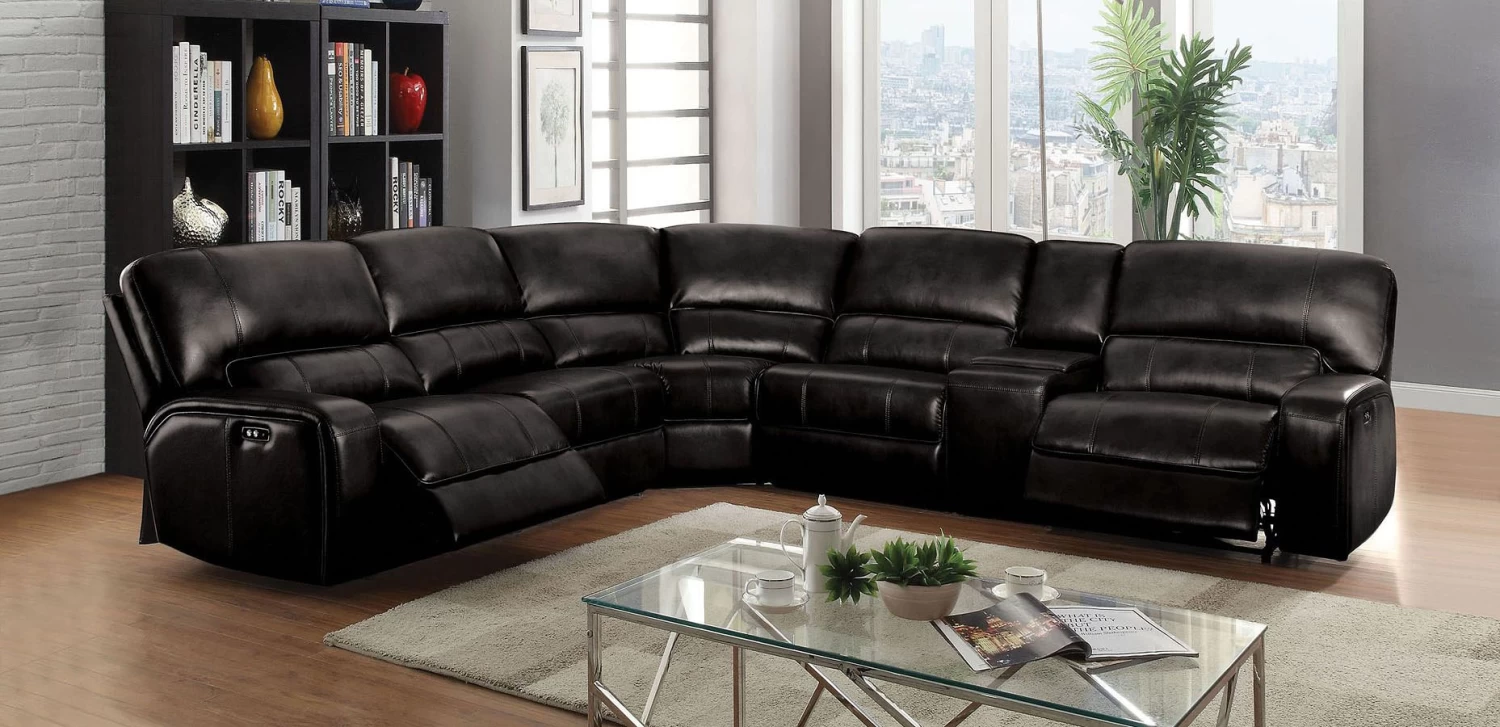- OverviewSharing this luxurious Saul Sectional by Acme Furniture with your friends, family, and guests. Being wrapped with smooth black leather-aire and framed with hard wood, its quality and durability will guarantee your enjoyment perfectly. The USB docks are provided on both ends, making it comes in handy for you to charge any electronics.