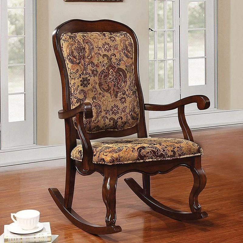 - OverviewThe Sharan Rocking Chair by Acme Furniture features a French provincial style with scalloped apron, cabriole front legs, expertly crafted in rich cherry finish and floral pattern fabric cushions. Its elegant appearance will add charm to any household.