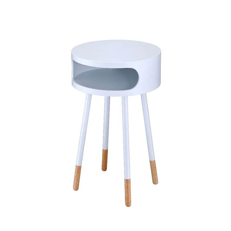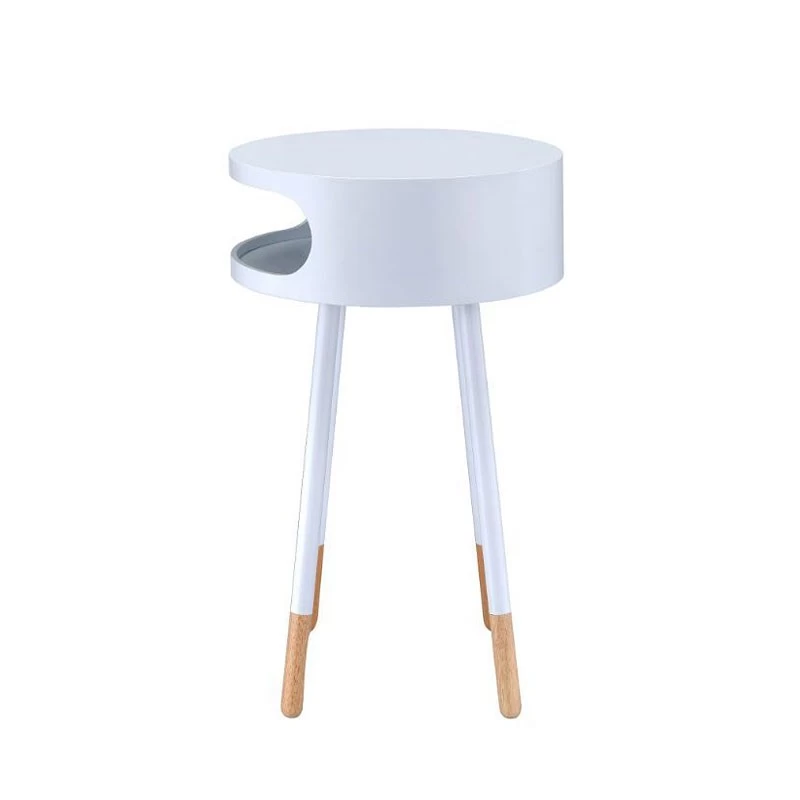 - OverviewThis Sonria Accent Table by Acme Furniture offers a contemporary take on a stylish retro design, ideal for your living room, family room, or bedroom! With its shelf, you can conveniently store remote controls or other small items in the open compartment. The natural wood featured at the base of the legs provides that extra flare to bring any room together.