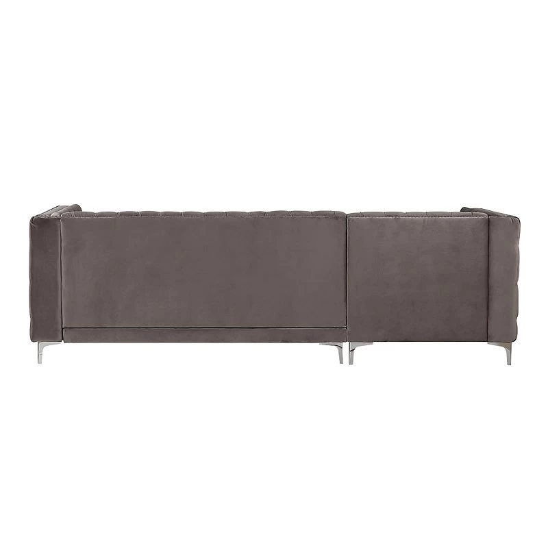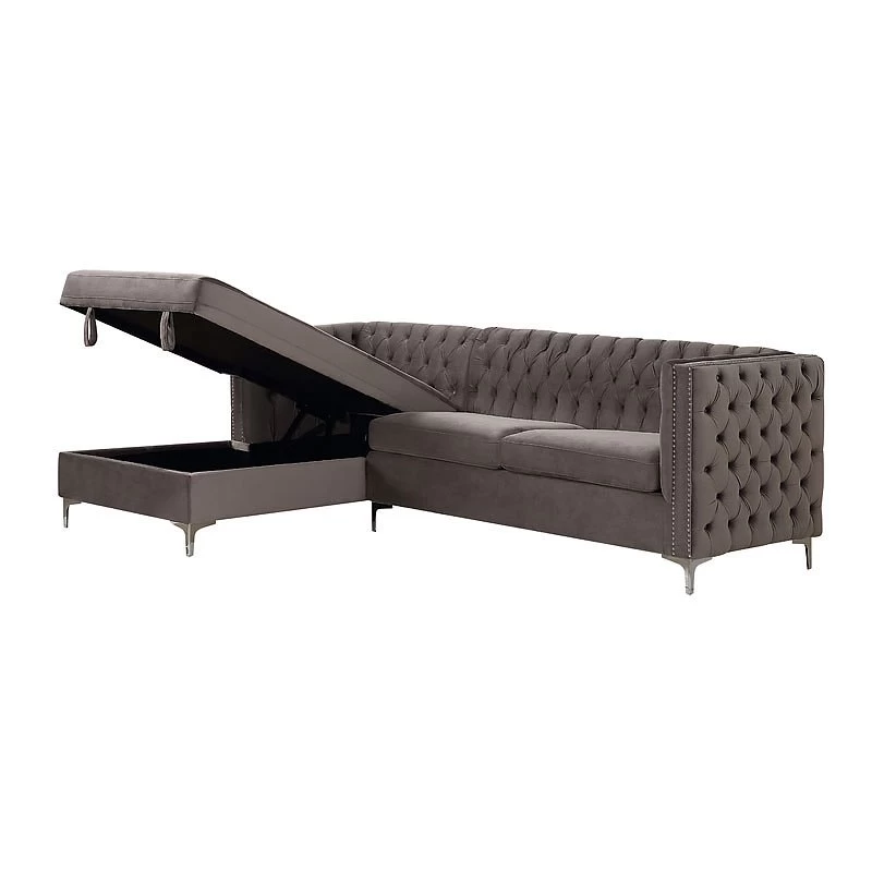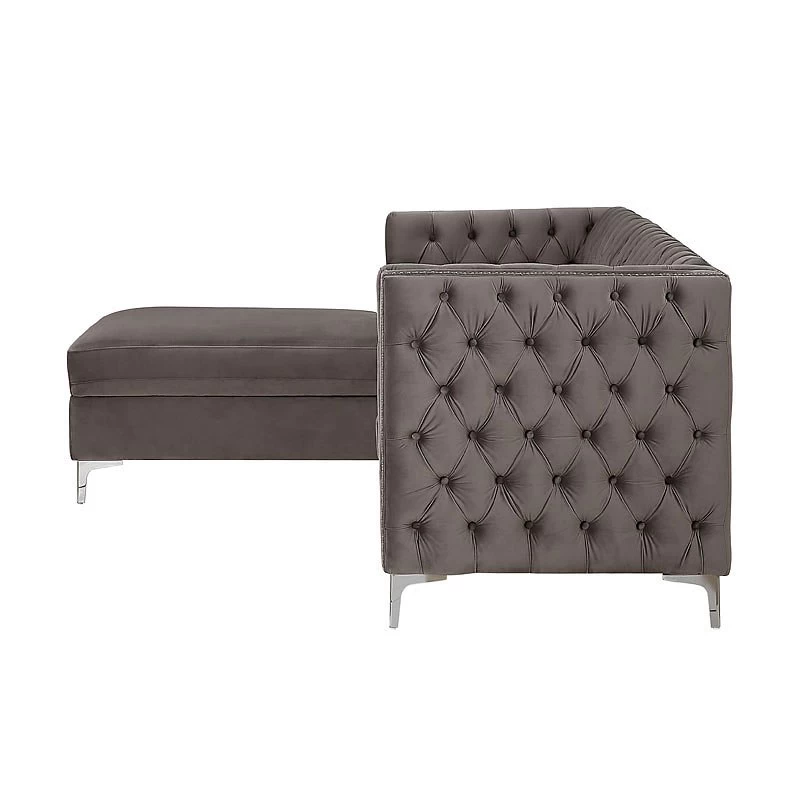 - OverviewDraped in striking velvet, the “L” shaped Sullivan Sectional by Acme Furniture makes a big impression. Button tufting bedecks the tight seatback and continues along both sides of its high shelter armrests. Nail head trim and metal bracket legs add shine to this gorgeous sectional, while pocket coil seat construction ensures years of comfort.