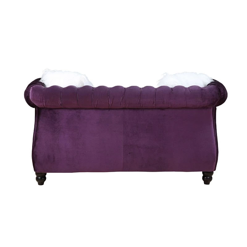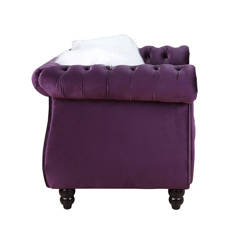 - OverviewWith its button-tufted upholstery and elaborate rolled arms, the Thotton Living Room Collection by Acme Furniture anchors your space in timeless appeal. The gracefully crafted wooden frame is fully covered with elegant velvet and showcases a classic chesterfield design. Sleek nail-head trims along the rolled arms add a touch of flair. The Living Room Collection features a tight seat and back cushion, including a full-foam seat and accent pillows that maximize seating comfort. Lending an Old World, vintage flair to your room decor with the Thotton Living Room Collection.