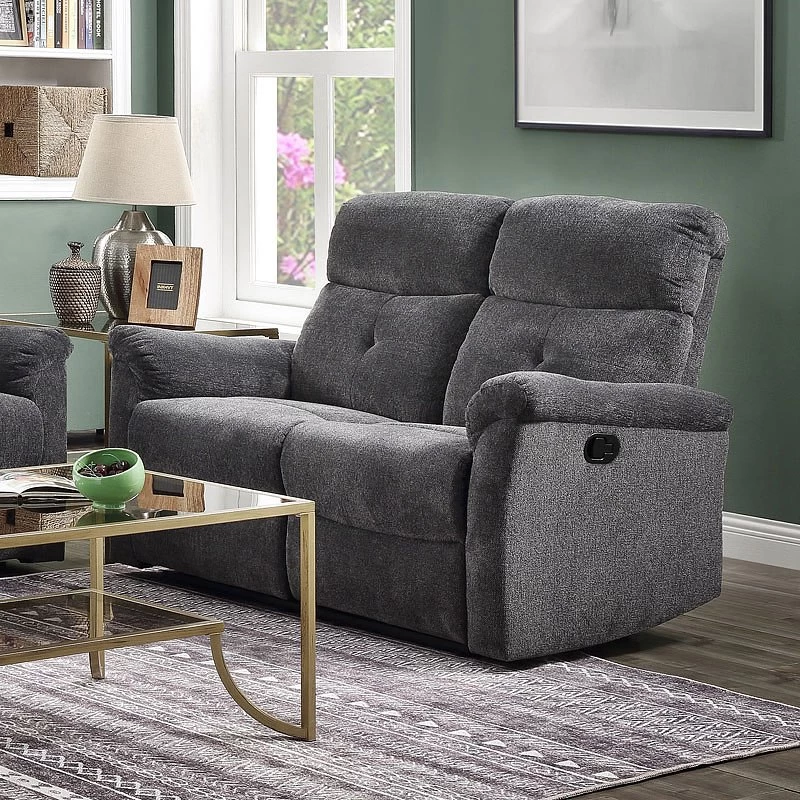 - OverviewWith its plush chenille upholstery and motion reclining, Treyton Living Room Collection by Acme Furniture will have you relaxing in no time. This motion collection has soft pillow top armrests and tight back and seat cushions so you can really sink your whole body into comfort. The practical gray of the upholstery and the single buttonless tufted detail on the seat backs means this collection looks good for the company despite being perfect for a nap. Enjoy cloud-like comfort with the Treyton Collection!